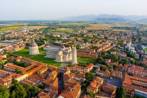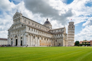 始建於1064年,是羅馬式建築的傑作,立面以白色大理石築成,並鑲嵌彩色石材,展現中世紀工藝之美。綠草如茵的奇蹟廣場上,斜塔、大教堂與洗禮堂交織出壯麗建築群,象徵當年作為地中海強國的榮光。