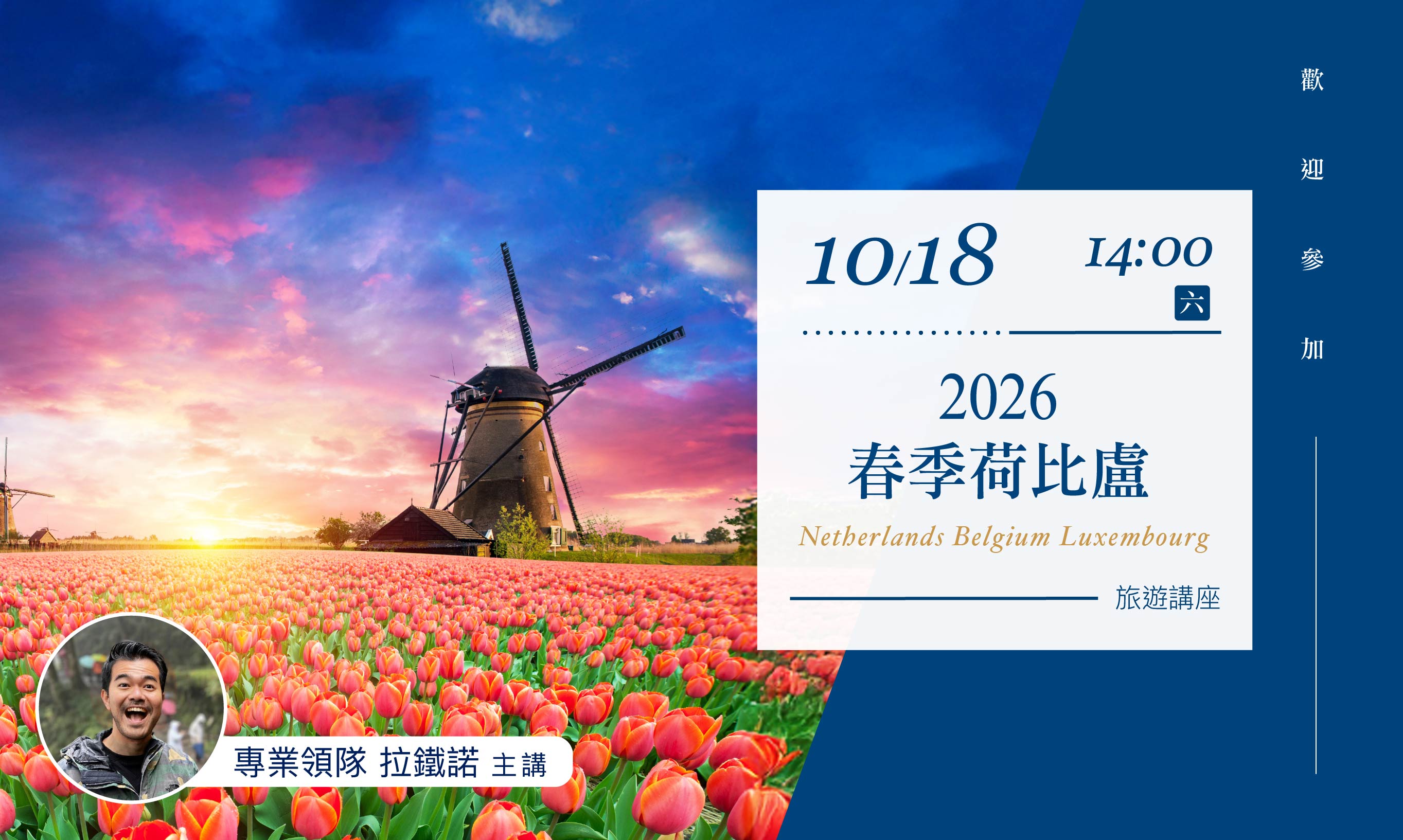 10/18(六)14:00【2026春季荷比盧】旅遊講座(台北場)