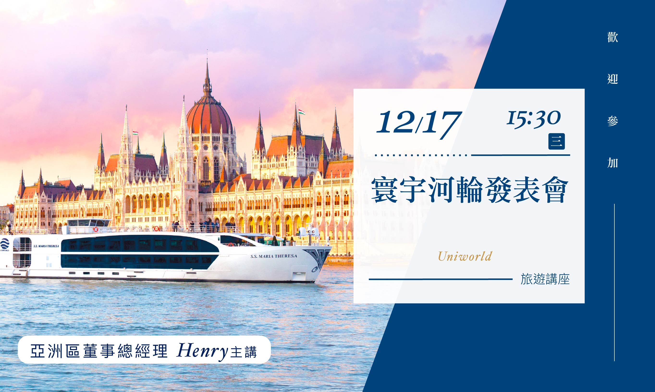 12/17(三)15:30 【UNIWORLD寰宇河輪發表會】旅遊講座B場(台北場)(JR東日本大飯店2F牡丹廳)