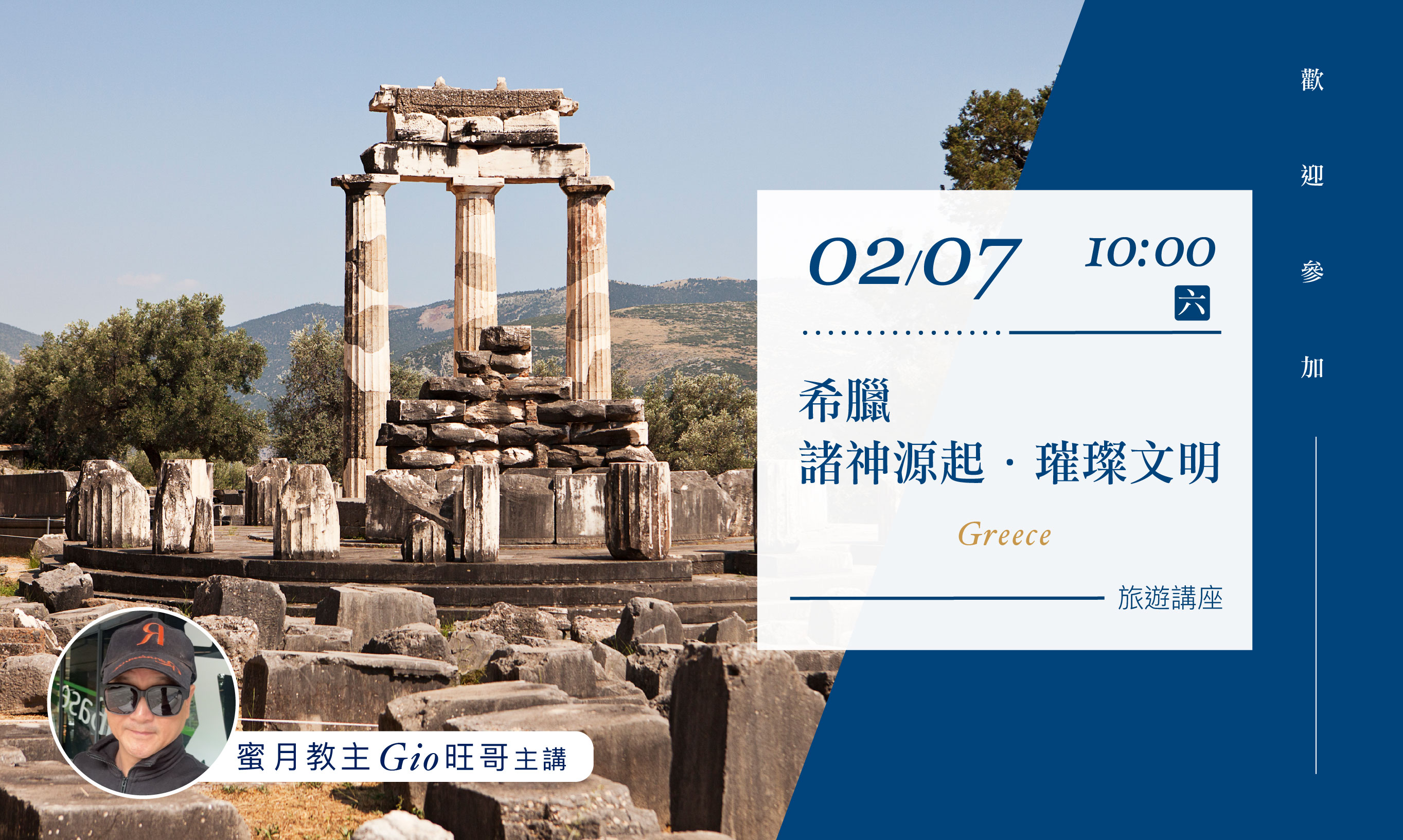 02/07(六)10:00【希臘-諸神源起.璀璨文明】旅遊講座(台北場)