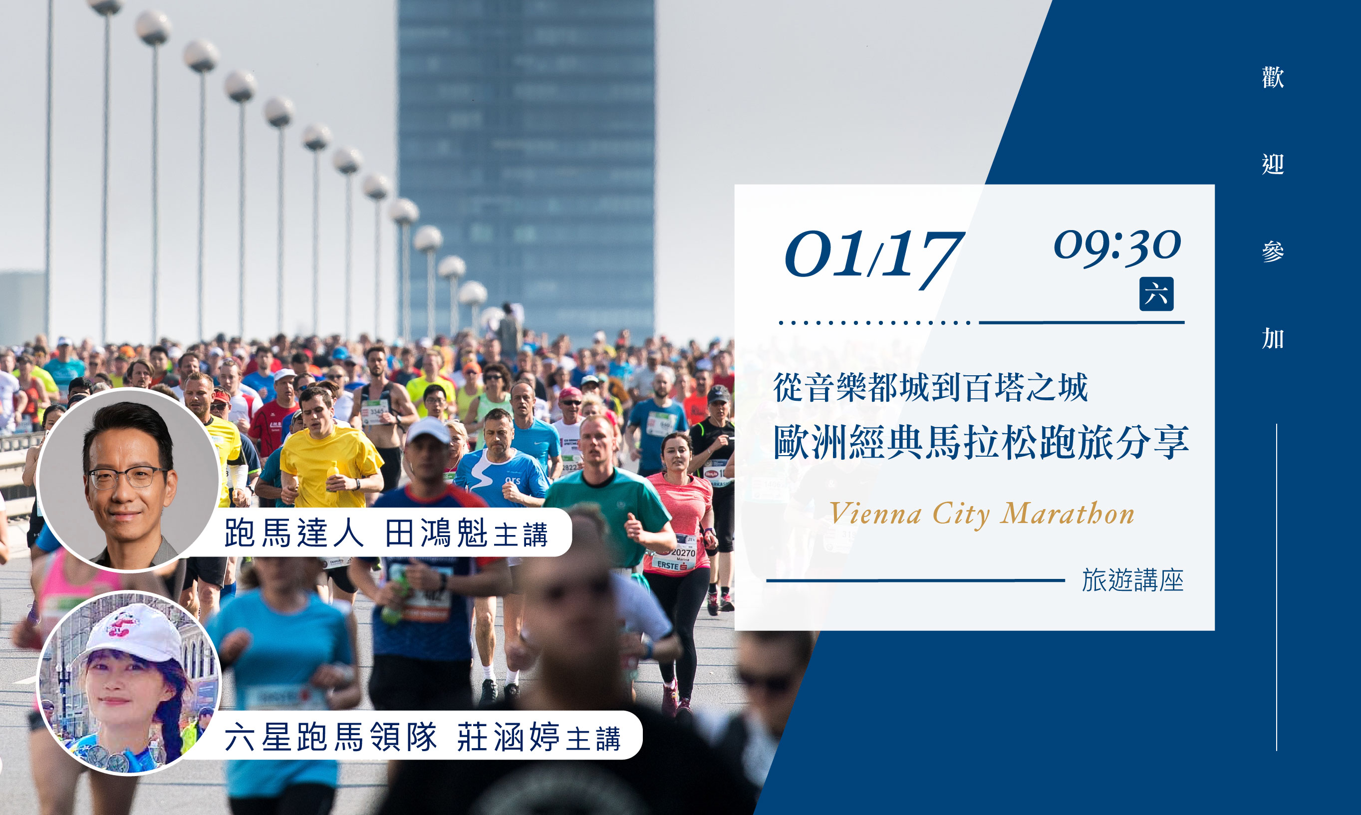 01/17(六)09:30【從音樂都城到百塔之城:歐洲經典馬拉松跑旅分享】旅遊講座(台北場)