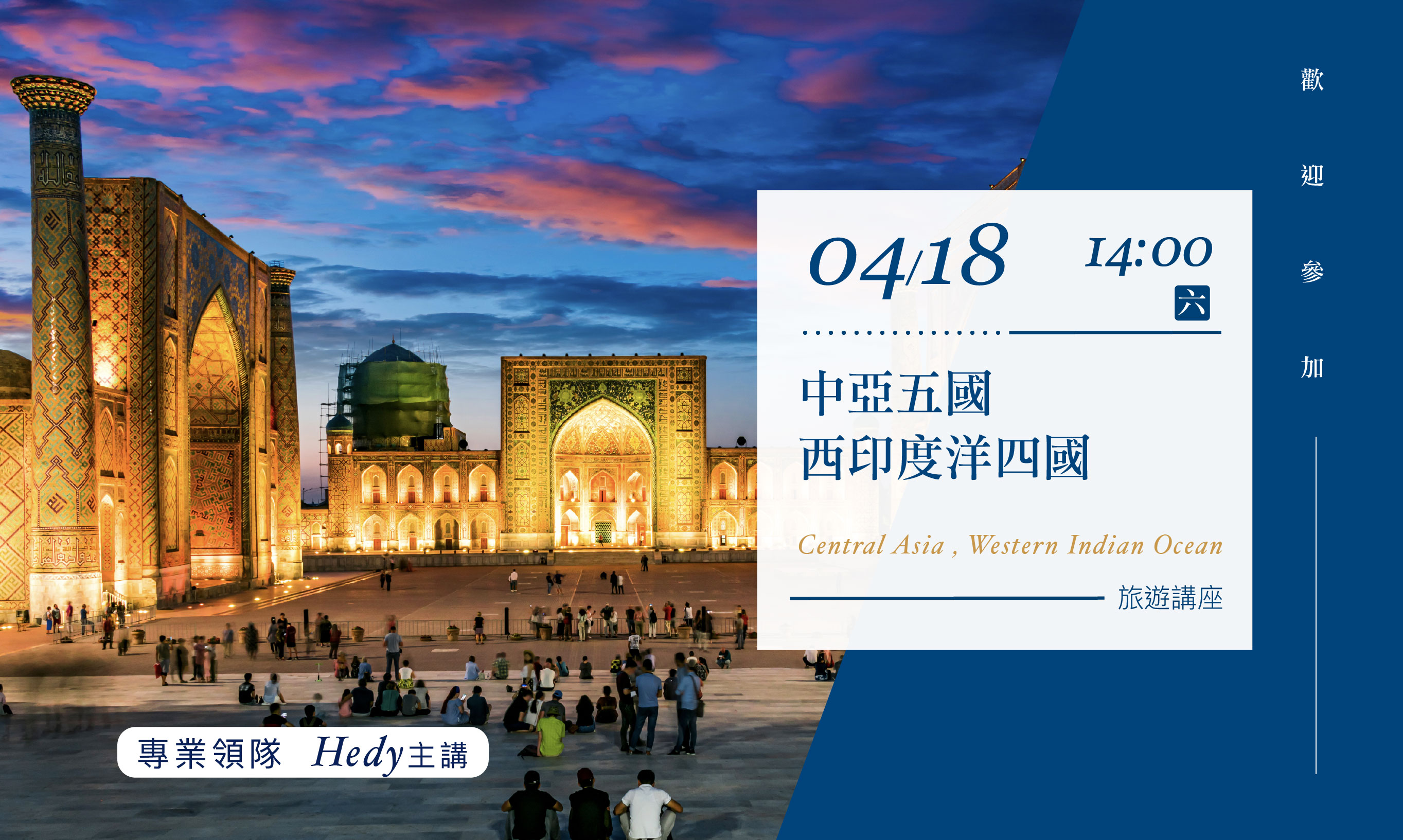 04/18(六)14:00【中亞五國、西印度洋四國】旅遊講座(台北場)
