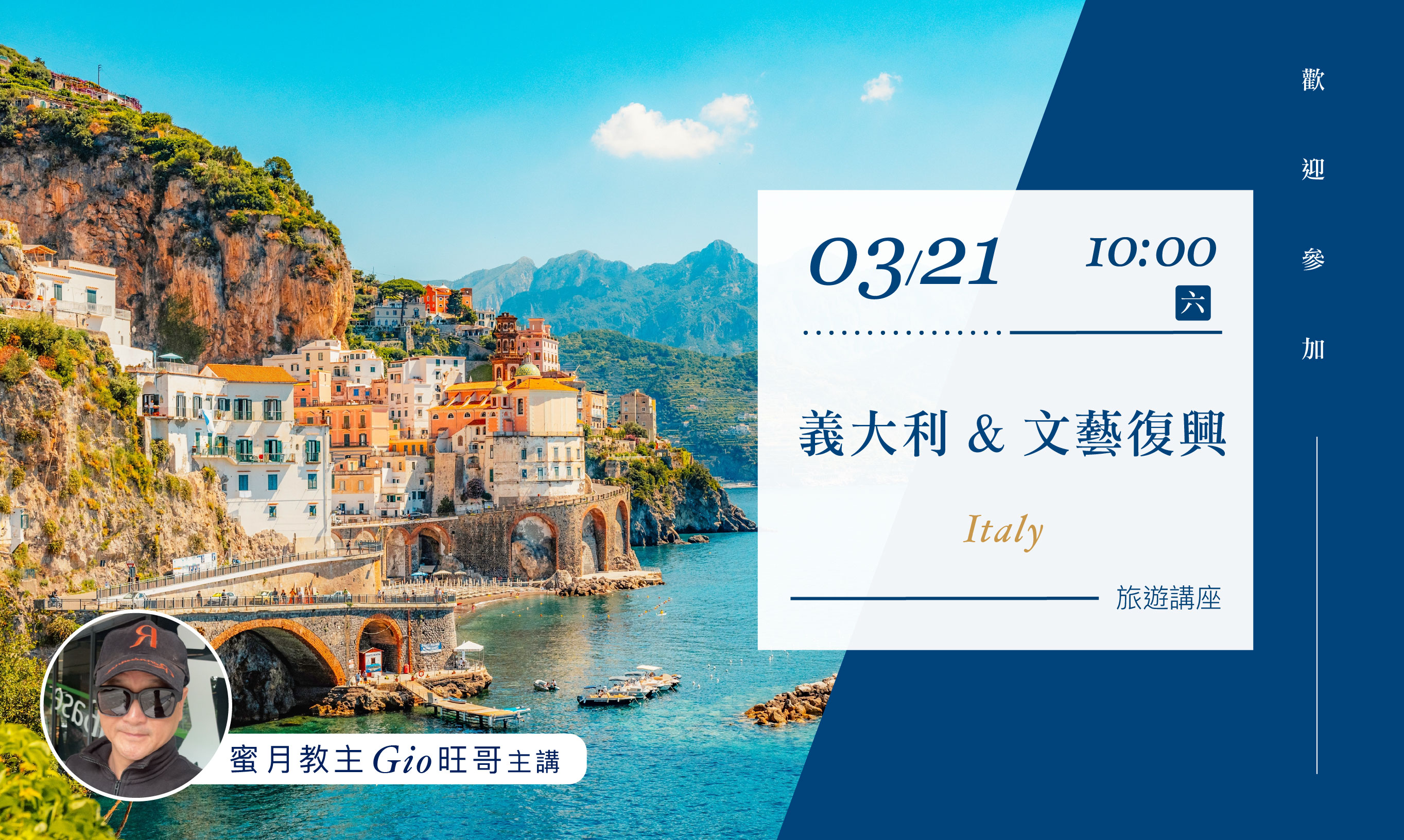 本次講座將帶您深入這個充滿魅力的國度,從羅馬的古蹟到威尼斯的水道,從托斯卡尼的葡萄園到西西里島的海岸,