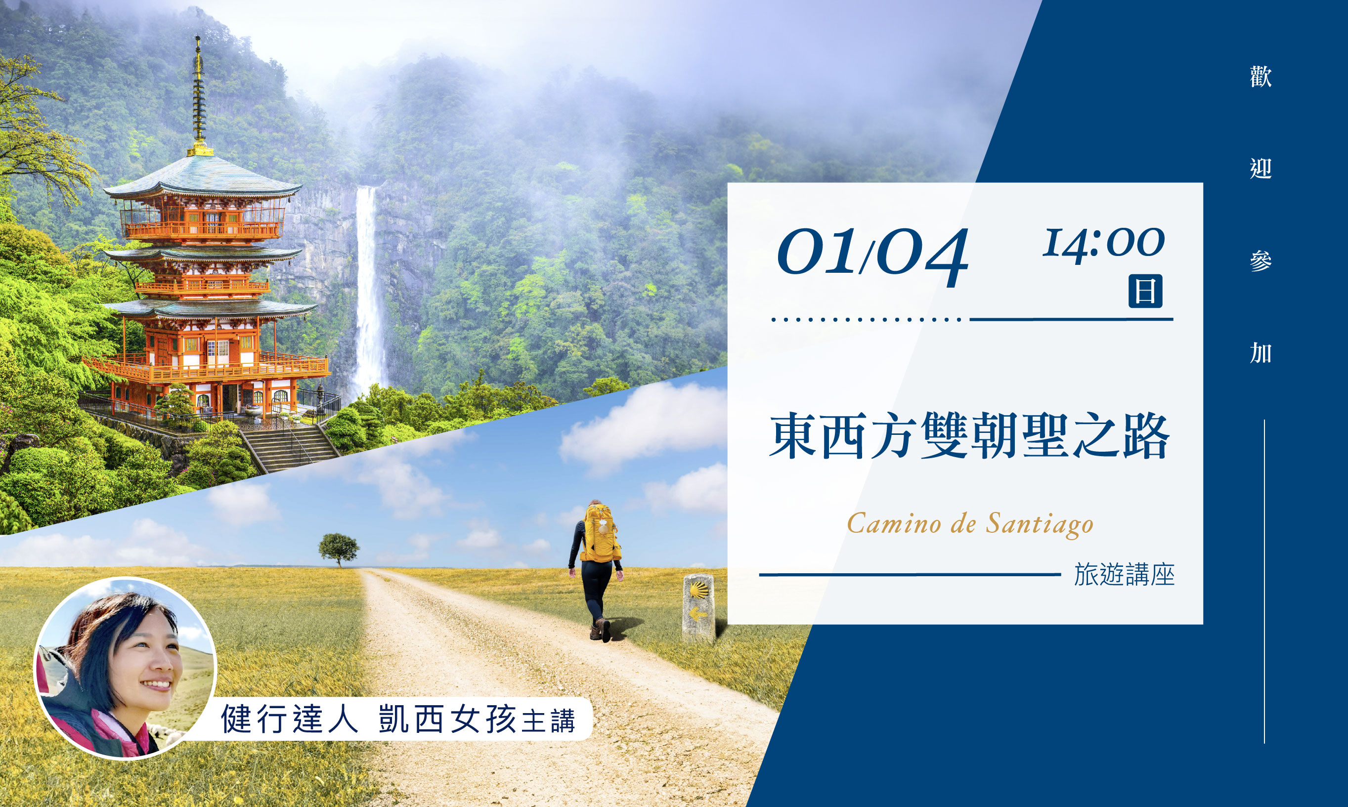 01/04(日)14:00【東西方雙朝聖之路】旅遊講座(台南場)※ 本場講座暫時額滿,報名請洽專員。