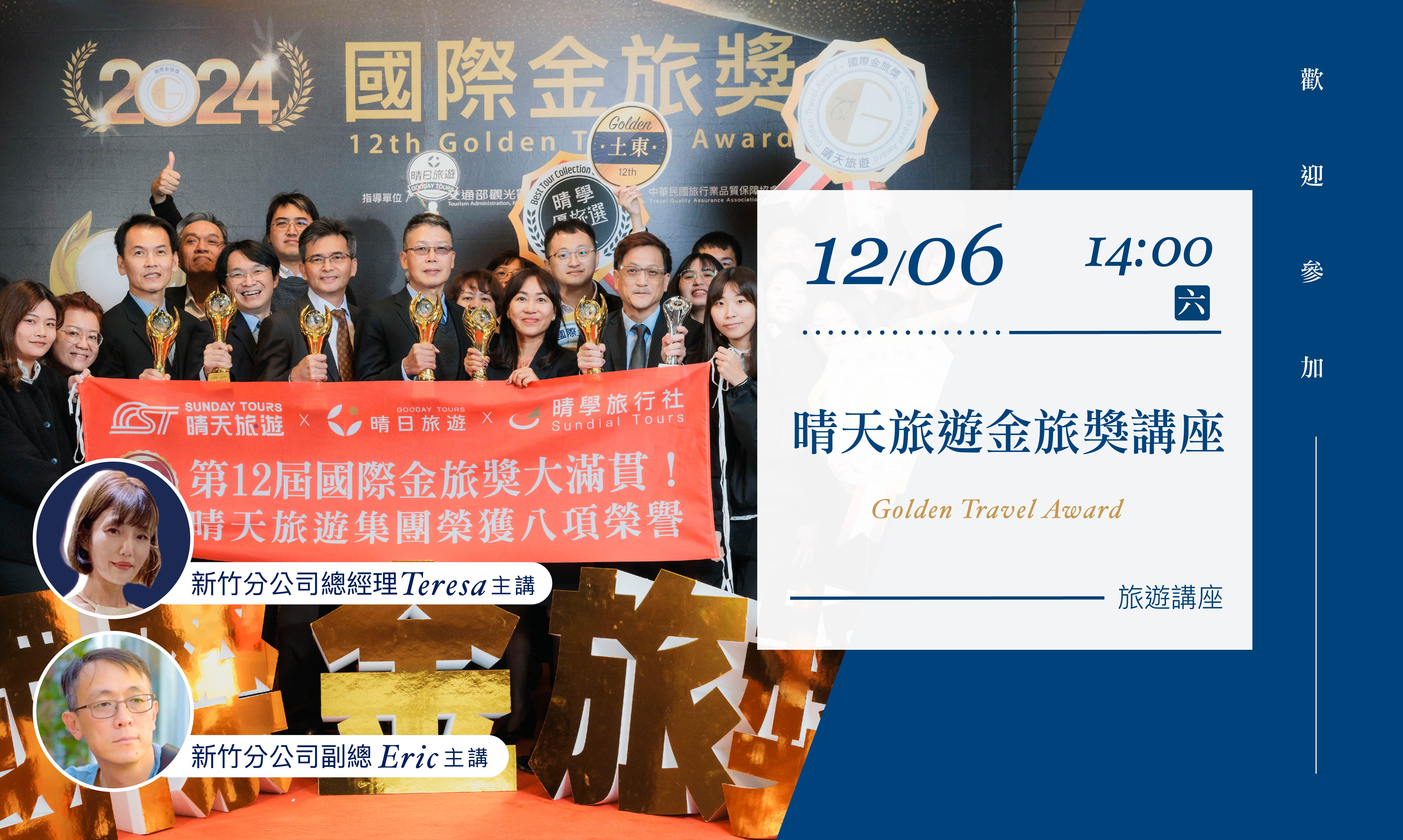 12/06(六)14:00【晴天旅遊金旅獎】旅遊講座(桃園場)(尊爵大飯店翡翠廳)