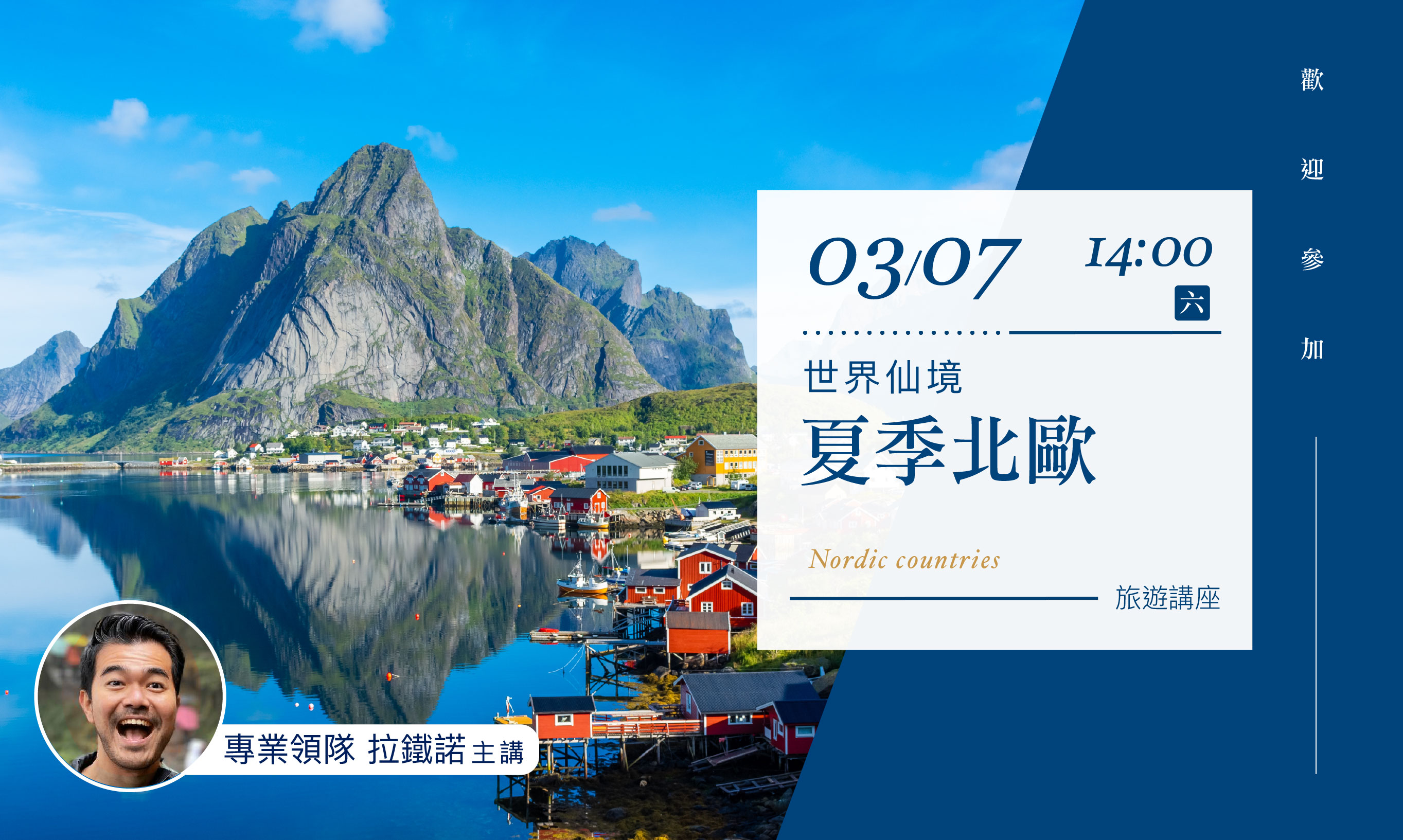 03/07(六)14:00【世界仙境之夏季北歐】旅遊講座(新竹場)