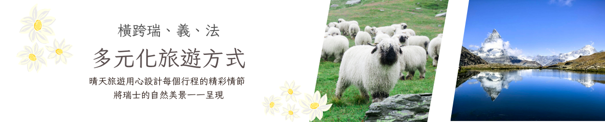阿爾卑斯山最美的景致在瑞士,到瑞士就是要充份呼吸阿爾卑斯山的清新空氣。晴天旅遊帶您慢遊四大知名BOTA山城、參觀五大名峰,體驗景觀列車外亦可享受健行的樂趣。讓參與行程的貴賓能在此留下最深刻的記憶、最難忘的足跡。
