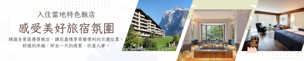 少女峰區山城四星級飯店2晚連泊,享受群山的壯麗與空氣中的純淨,深刻體驗瑞士鄉間小鎮的寧靜與凝靜。