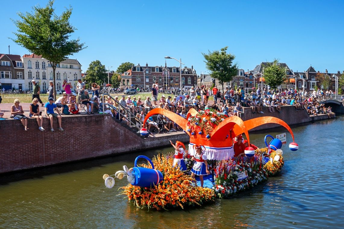 每年六月,荷蘭迎來繽紛的花船節。數十艘以鮮花、蔬果與創意佈景裝飾的花船,沿運河緩緩航行,化身一場漂浮的夏日嘉年華,展現荷蘭園藝王國的浪漫與巧思。這場結合自然與藝術的巡遊,讓夏日的荷蘭更加絢麗動人。