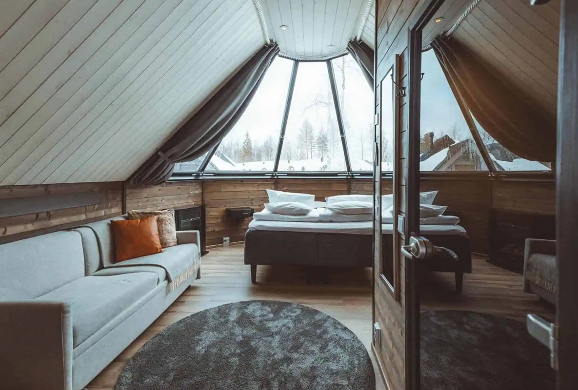 近年話題十足的玻璃屋就是從芬蘭開始的,但絕非冬季專屬,大片的全景玻璃,隨時遠離塵囂的紛擾,大片全景玻璃屋頂,讓你躺在房內充分體驗夏季午夜太陽的溫暖色調,如果願意,要不要熬夜等一下極光女神的降臨呢?