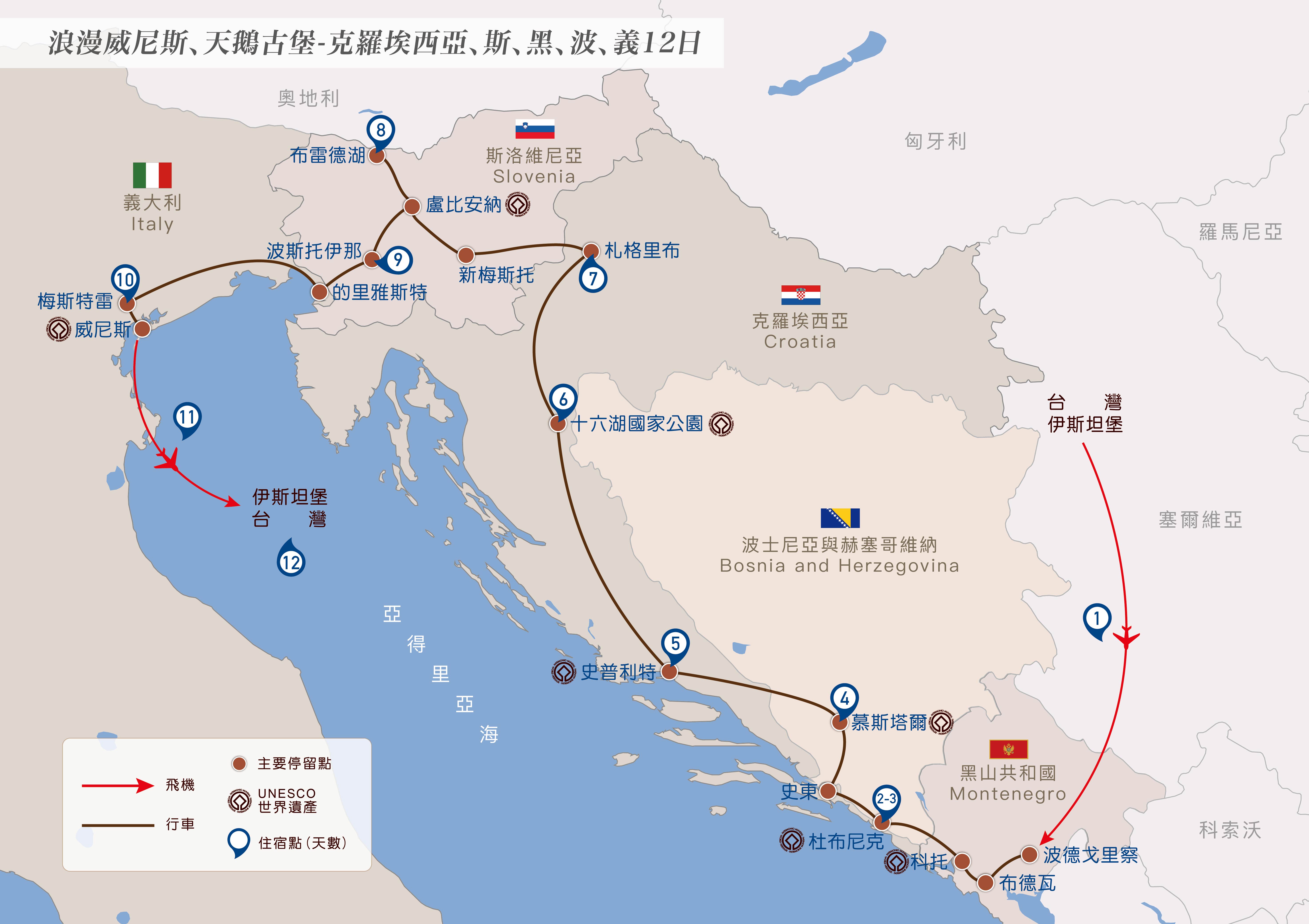 伊斯坦堡✈波德戈里察【黑山共和國】—70km—布德瓦—25km—科托—95km—杜布尼克【克羅埃西亞】