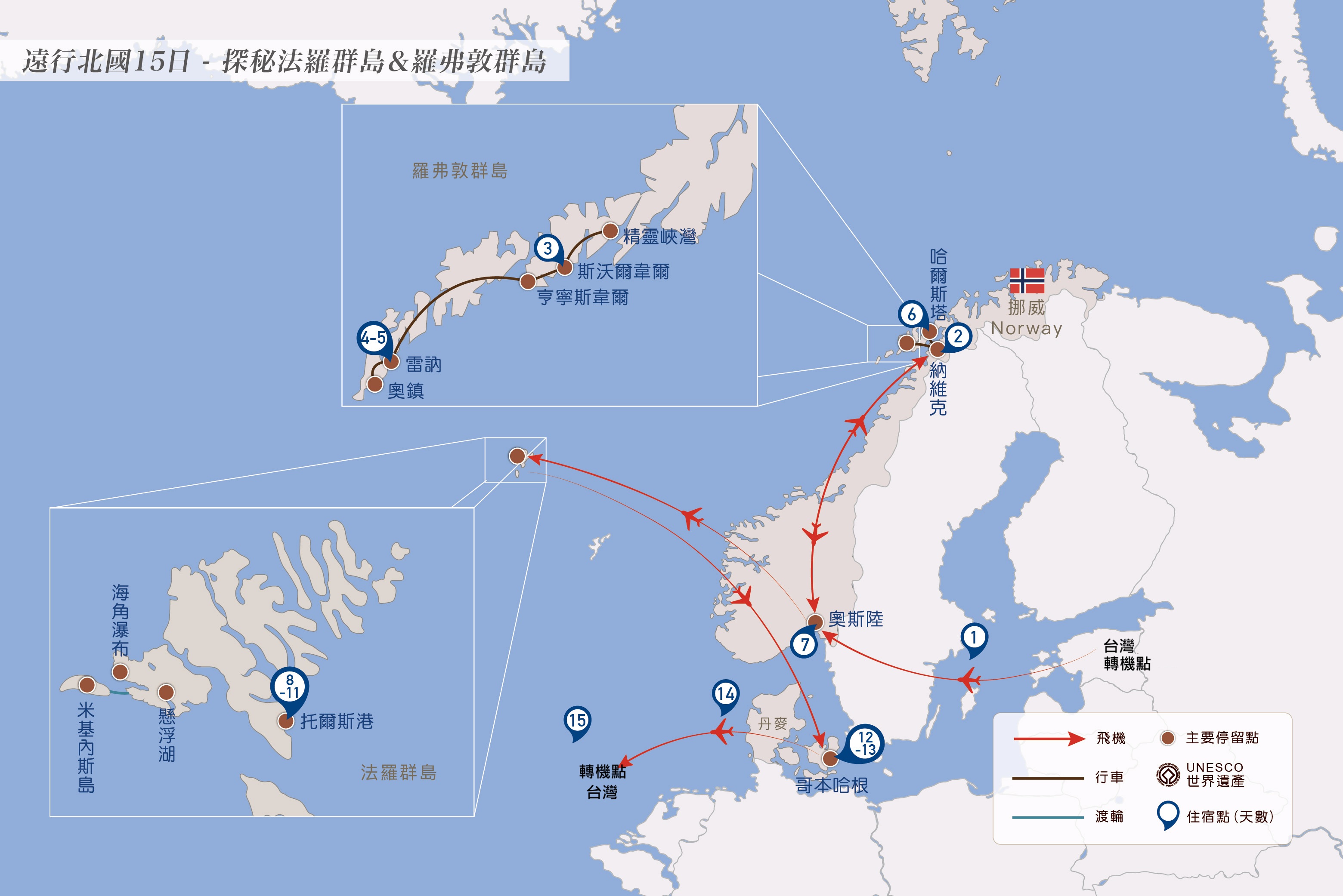 早餐:機上用餐 午餐:北歐風味料理 晚餐:搭機耗時,敬請自理