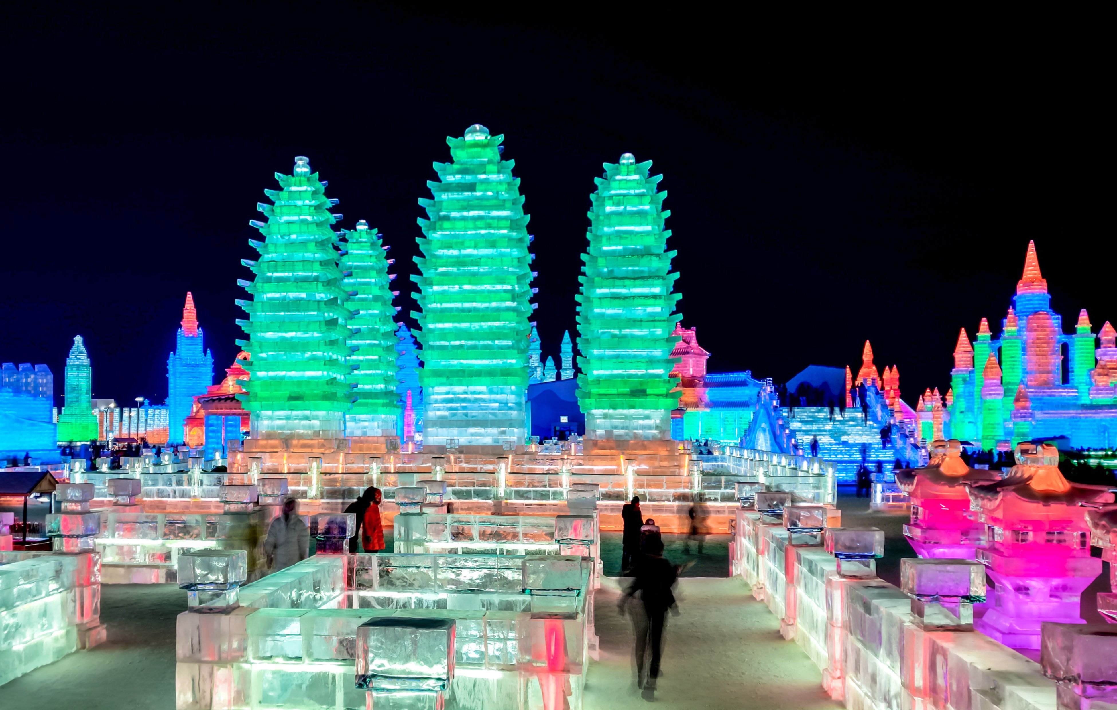 哈爾濱冰雪大世界誕生於1999 年,哈爾濱冰雪大世界成功挑戰吉尼斯世界紀錄,獲得「世界最大的冰雪主題樂園」稱號。景區有許多冰雕、雪雕和建築,所有的建築都是由純冰製成。景區不僅可以欣賞美麗的冰雕和雪雕,還可以參加各種不同的冰雪活動。