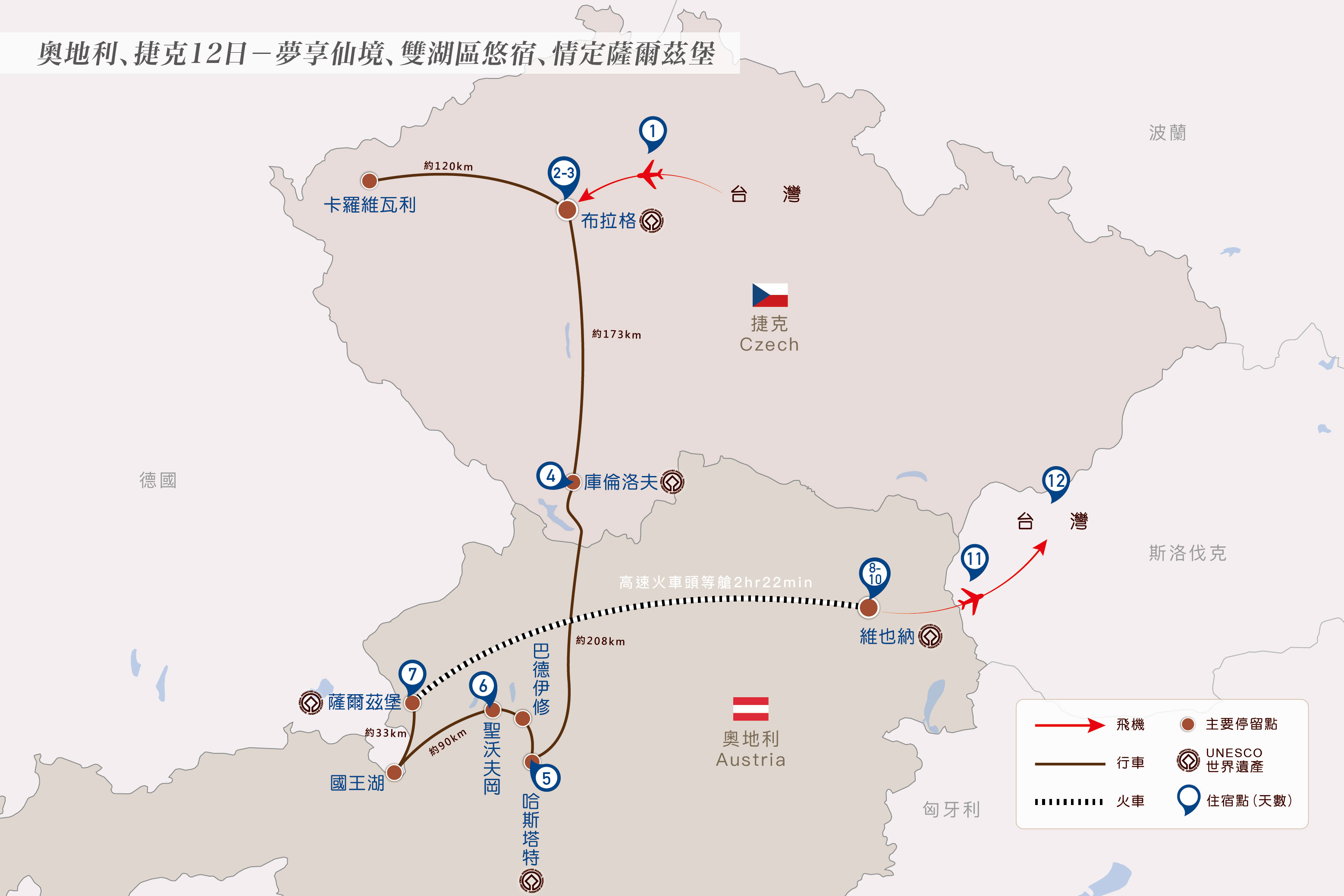 今日桃園機場集合,搭乘中華航空直飛前往百塔之城布拉格。隔日清晨抵達,展開精彩的【 捷奧尊榮典藏12日】。
