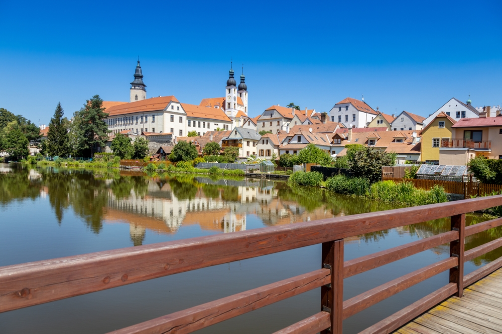 木橋建於19世紀,橫跨特爾奇古城旁的◎烏利茨基池塘,池面如鏡倒映彩色屋舍與教堂尖塔,這裡也是觀賞特爾奇城堡的最佳視角。城堡建於16世紀,由哥德式堡壘改建為文藝復興宮殿,與彩色古鎮及湖泊相映,譽為摩拉維亞最迷人瑰寶。
