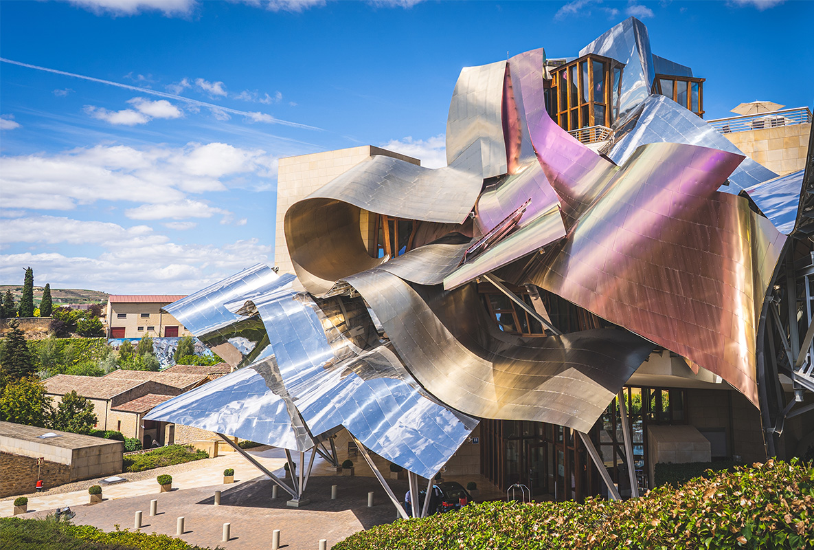 超過150年歷史的釀酒廠重金請來炙手可熱的Frank Gehry,為品酒愛好者打造酒莊飯店,以扭曲纏繞的鈦金屬板而聲名大噪,雨庇設計靈感來自酒瓶上的鉑紙,與砂岩建築形成強烈對比,走進當代前衛建築深入瞭解此區釀酒技藝,讓單寧在舌尖大肆綻放!