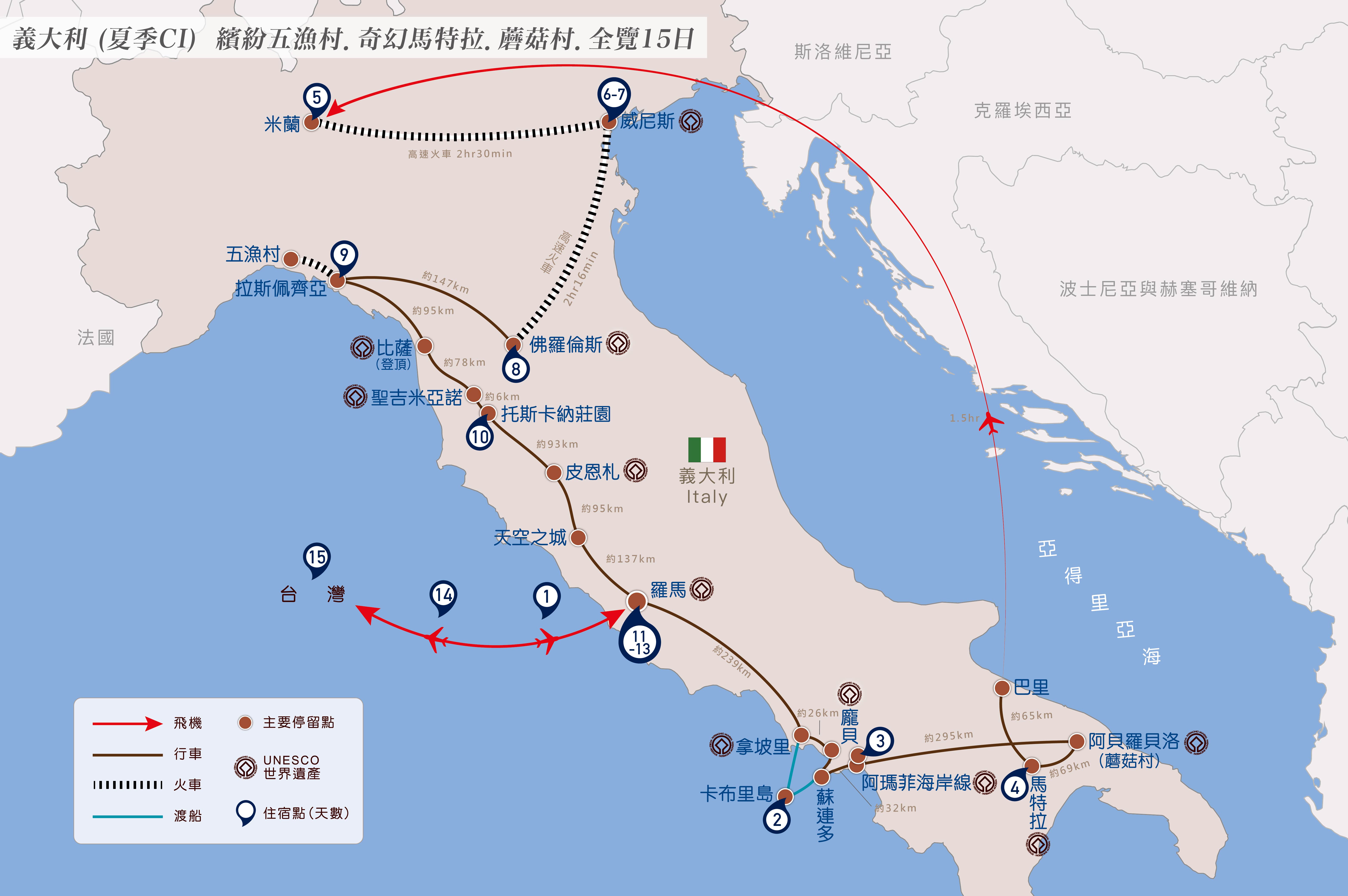 2. 除了專業服務的隨團領隊,義大利於城市中穿插安排當地具執照專業導遊提供詳細的導覽及解說。