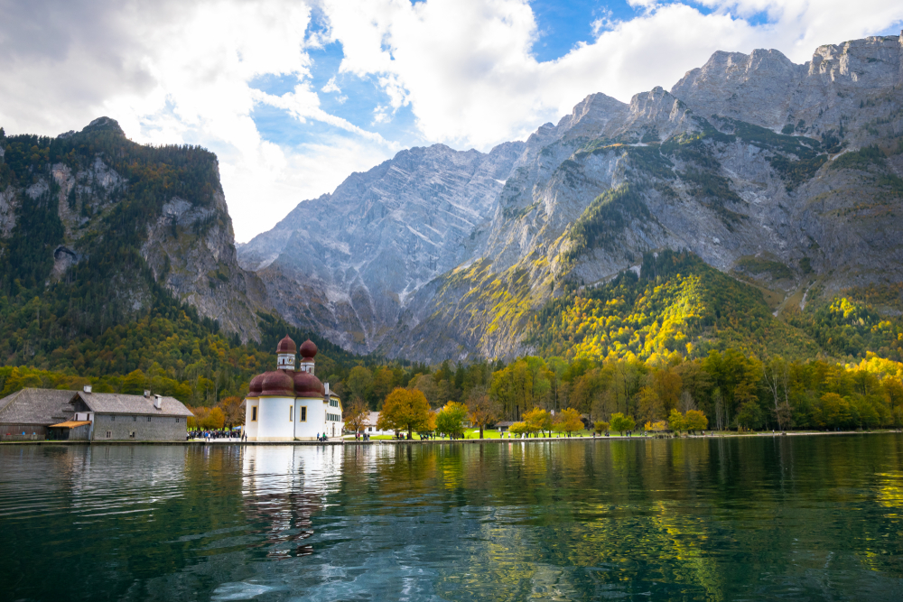 位於國王湖西岸,始建於12世紀,17世紀改建為巴洛克風格。其紅色洋蔥圓頂與白色牆身極具辨識度,靈感源自薩爾茨堡大教堂。建築小巧卻精緻,內有祭壇與壁畫,散發濃厚宗教氛圍。僅能搭乘遊船或健行抵達,教堂與碧綠湖水、阿爾卑斯群山交織,宛如童話仙境。