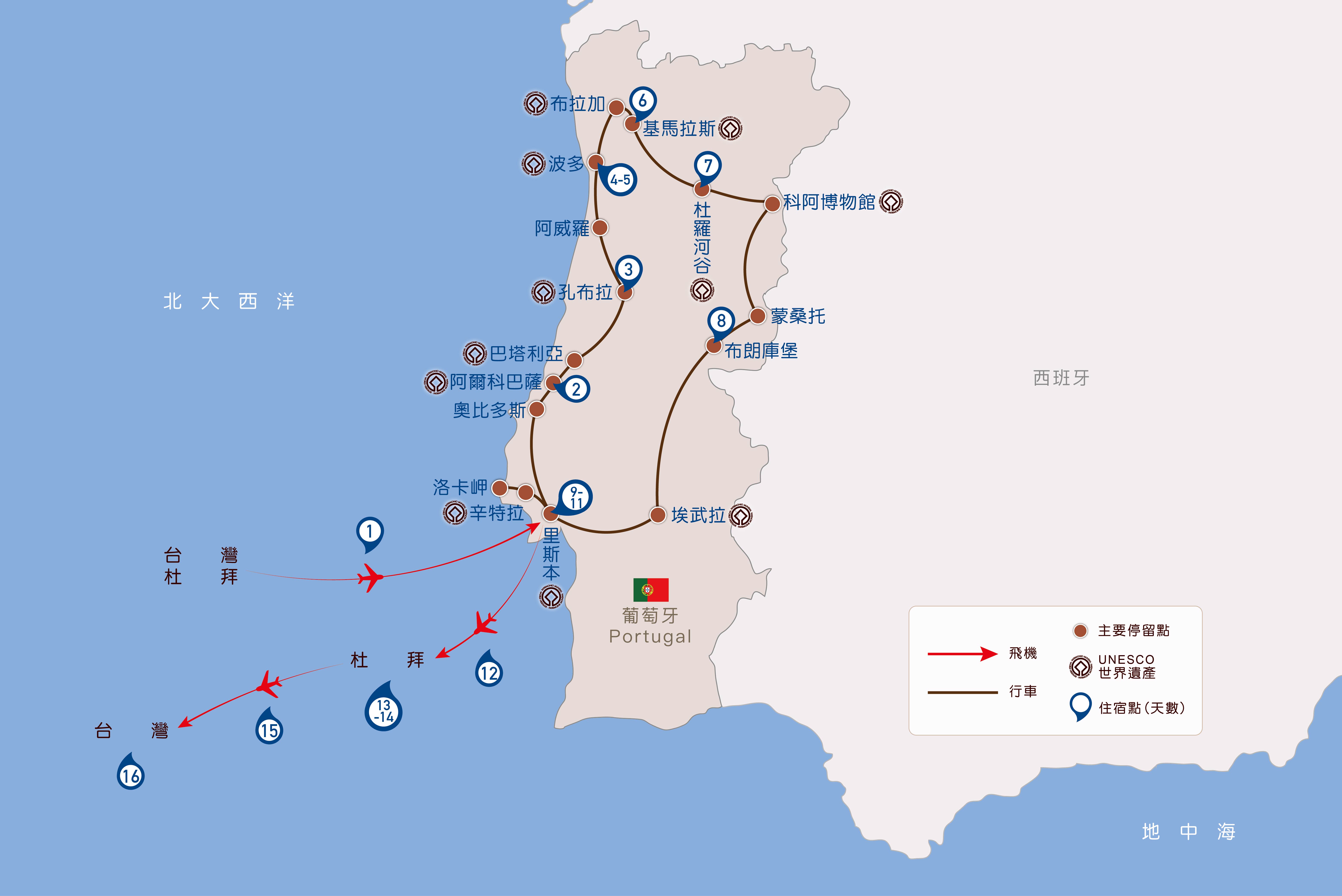 天數起飛地─抵達地機場