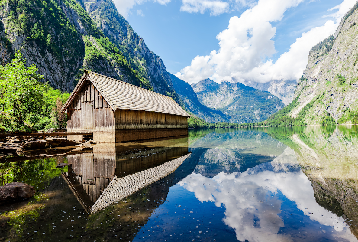國王湖湖水清澈碧綠,被譽為德國最乾淨、最美麗且最深的湖泊。乘坐環保電動遊船,靜靜滑行於群山環抱的湖面,宛如置身翡翠仙境。途中船夫會吹奏小號,清脆樂聲在峭壁間迴盪,展現獨特「天然回音」,美不勝收,令人沉醉於大自然的寧靜與壯麗。