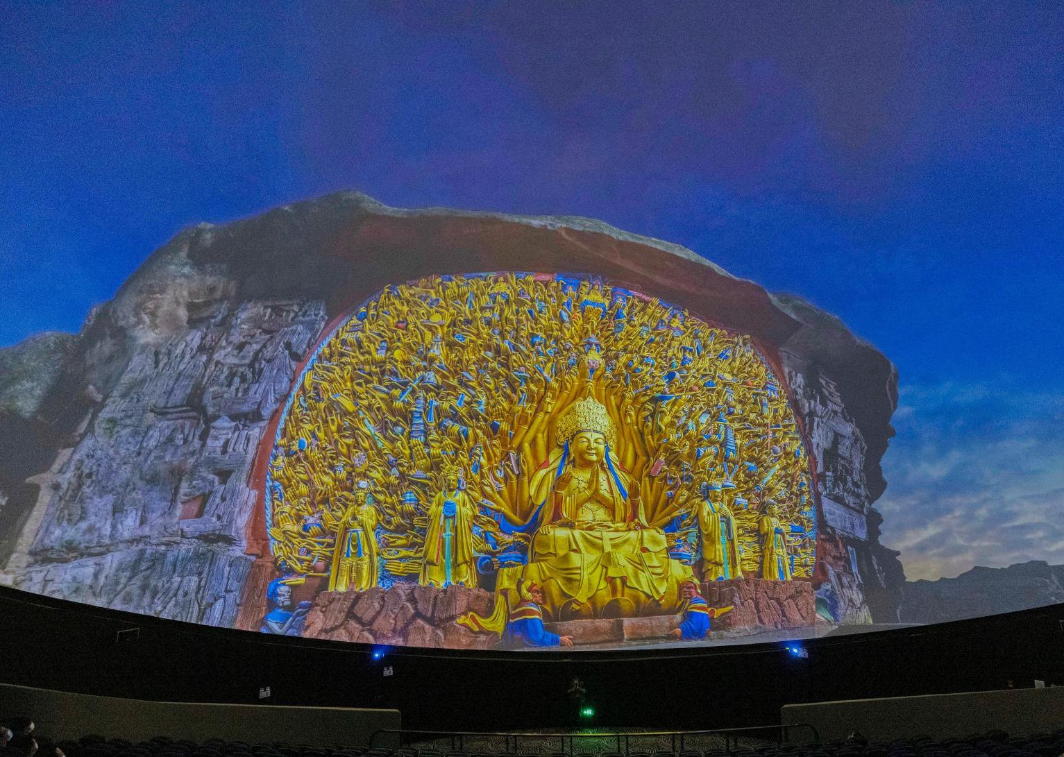大足石刻通過4K寬銀幕電影《天下大足》和8K球幕電影《大足石刻》兩部數字影片,為遊客提供了沉浸式的文化遺產體驗。《天下大足》4K寬銀幕電影以敘事方式展現。《大足石刻》全球首部採用「實景拍攝+CG動畫」的8K球幕電影。
