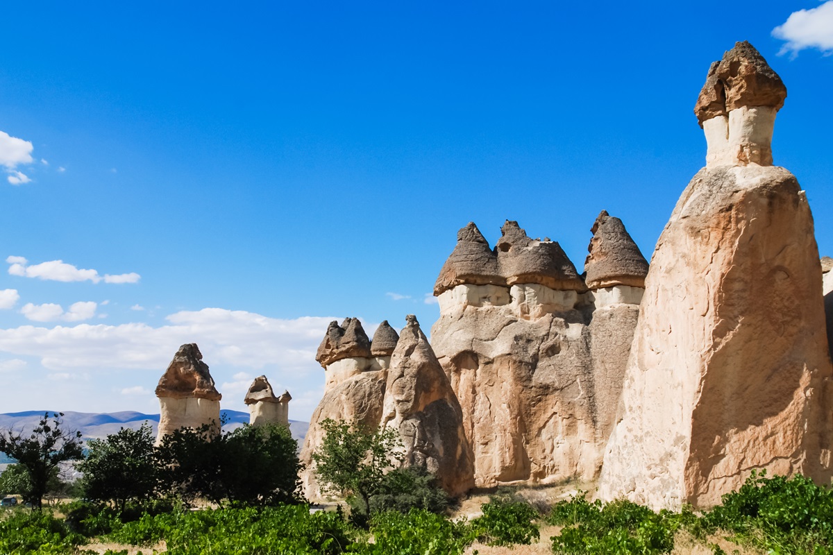 人稱「仙人煙囪」,是火山凝灰岩經百萬年風雨侵蝕的奇景。頂冠為堅硬玄武岩,形成獨特蕈狀。更奇妙的是,岩石內部被早期基督徒鑿成居所與教堂。