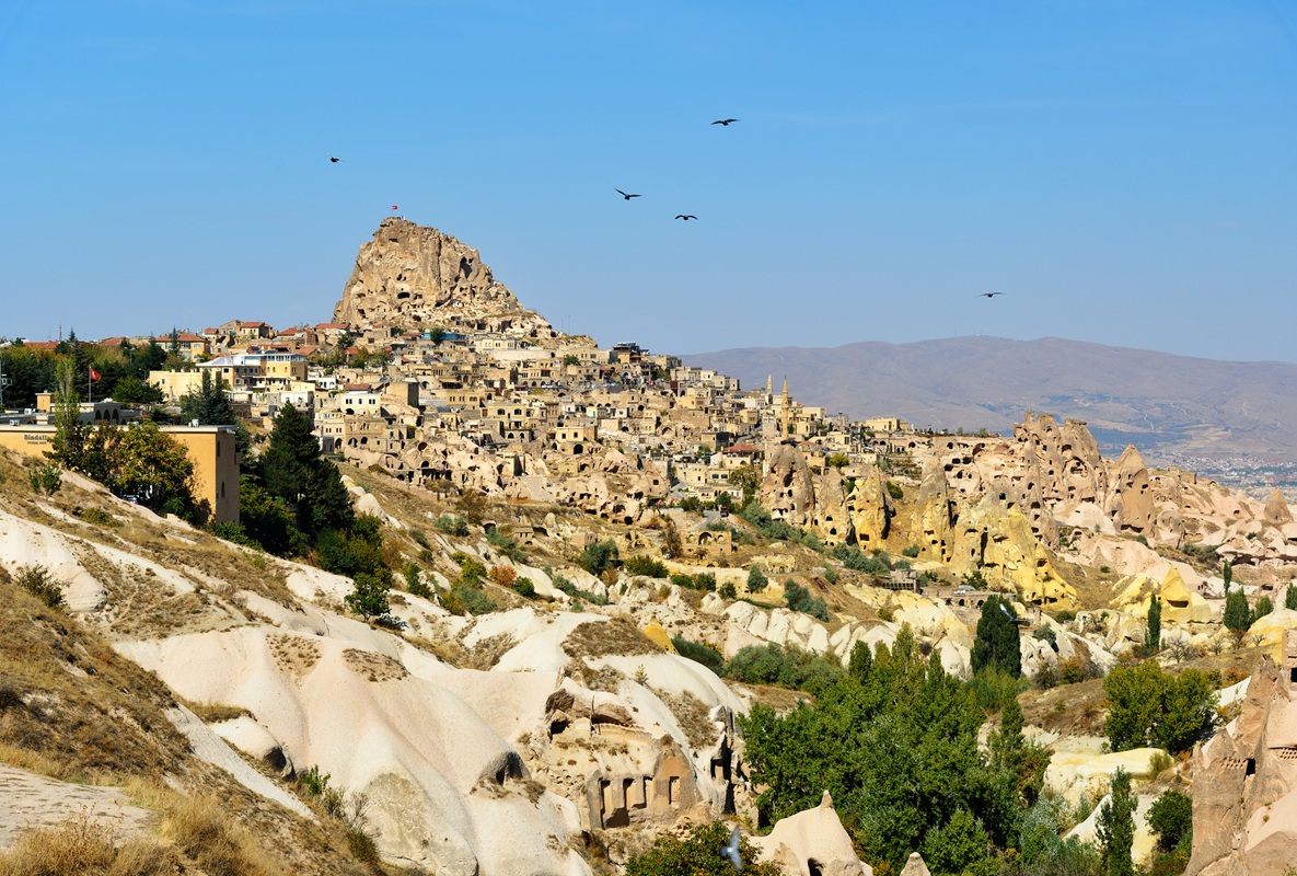 這座利用天然凝灰岩山丘改造而成的城堡,位於卡帕多奇亞高處,視野開闊,具有軍事防禦上的優勢。城堡結構精巧,擁有許多適合居住和儲藏的洞穴和房間,通道和階梯讓居民受到外來威脅時能迅速撤離。現在城堡的最大亮點是從城堡頂部俯瞰卡帕多奇亞的美麗景色。