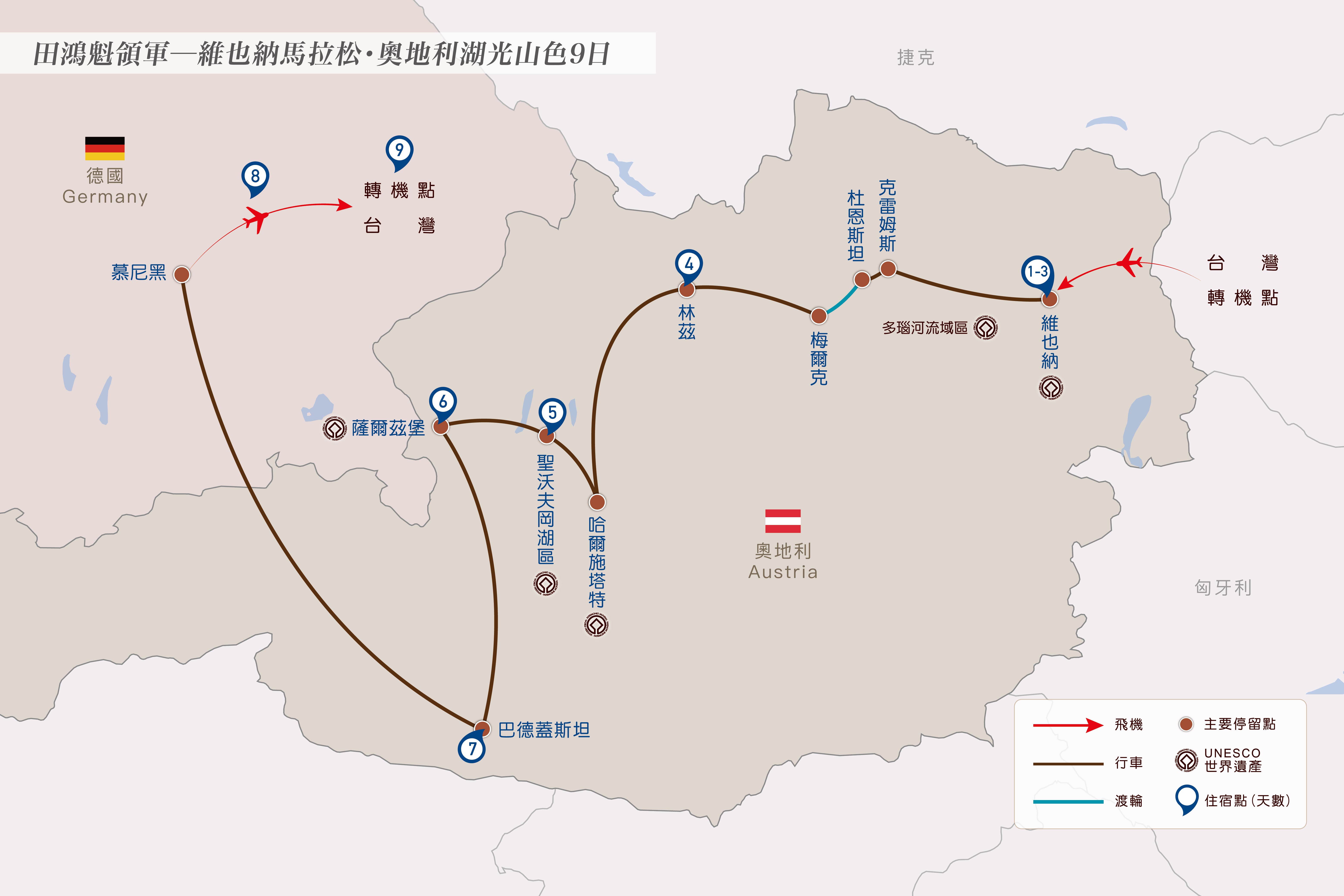 今天是維也納退房後移動日,請務必在離開飯店前清點所有行李,特別是您的馬拉松獎牌和紀念品。 遊船防曬:多瑙河遊船甲板上視野極佳,但日曬強烈,即使在非夏季,也建議準備太陽眼鏡和薄外套,享受船上風景的同時做好防曬。