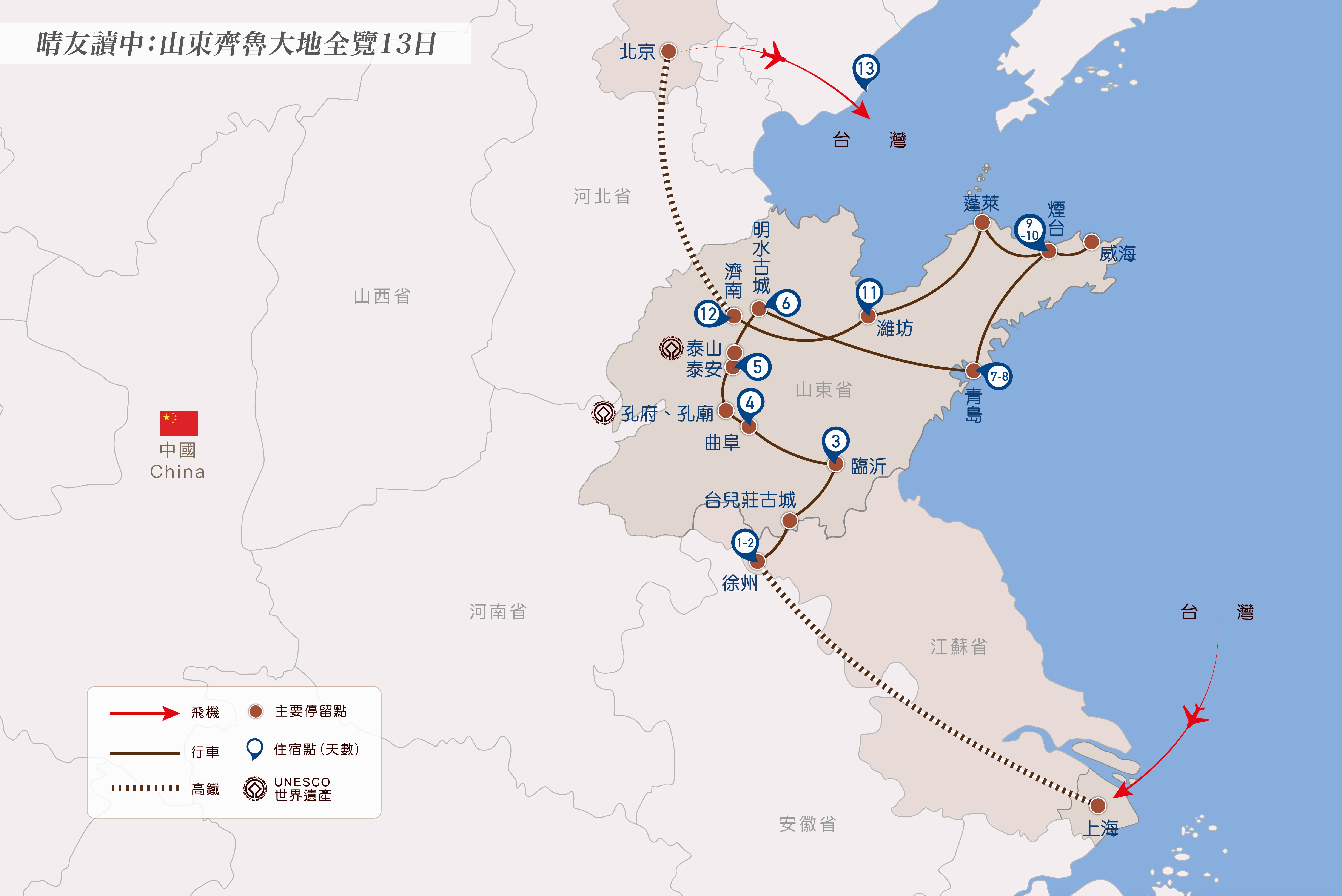 【徐州楚漢文化.儒家聖地雙孔.登泰山睥睨天下.品青島煙台名酒】