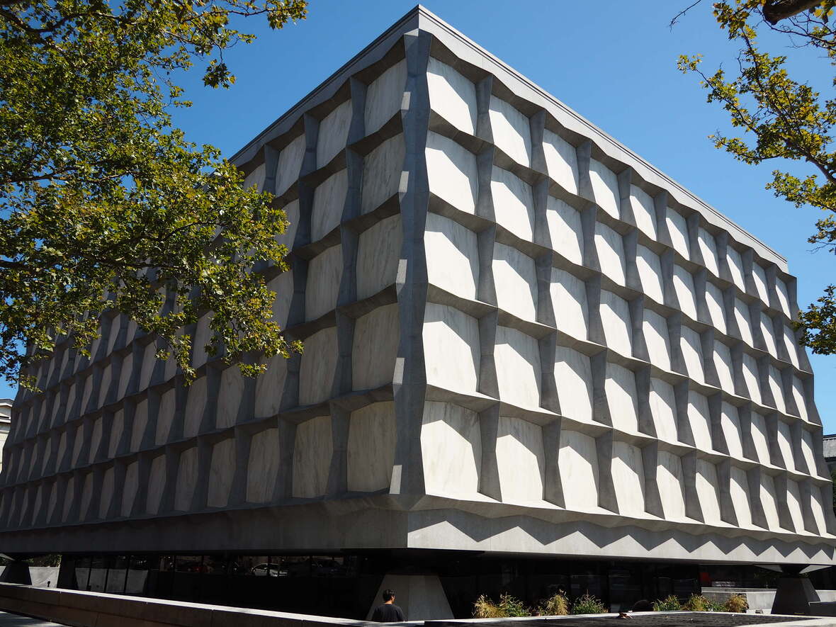 拜內克古籍善本圖書館收藏了世界上許多重要的古籍,包含了神祕的伏尼契手稿(Voynich Manuscript)和現存21本古騰堡聖經(Gutenberg Bibles)中的一本以其半透明的大理石立面及內部六層高的玻璃藏書塔而聞名。