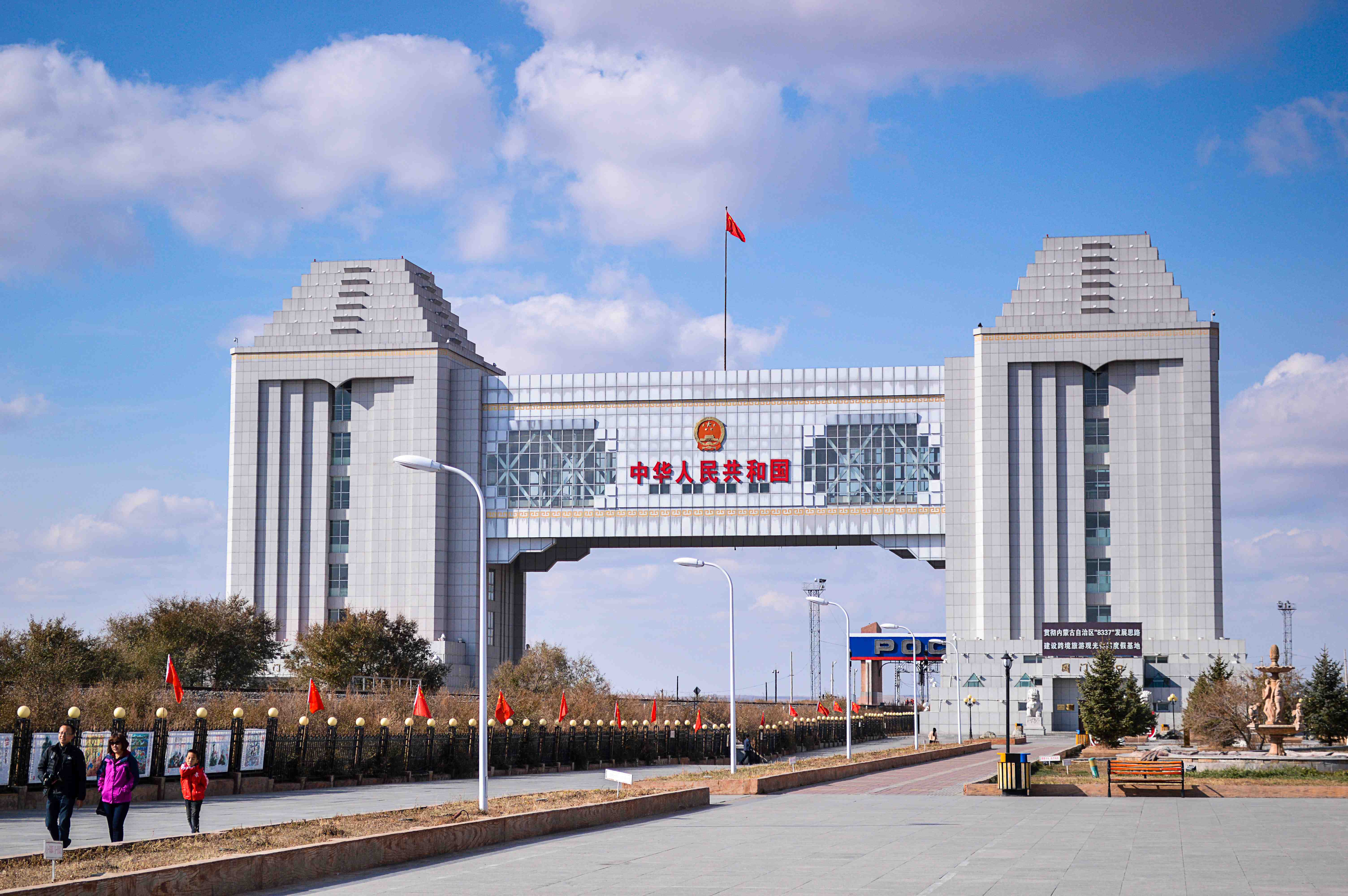 目前是中國陸路口岸最大的國門,正在申請批復國家5A級旅遊景區,是一幢高30米,寬40米的乳白色建築,國門上方有七個紅色大字「中華人民共和國」,國門對面不遠處便是俄羅斯的國門。登上國門俄境後貝加爾斯克小鎮的車站、建築、街道、行人盡收眼底。