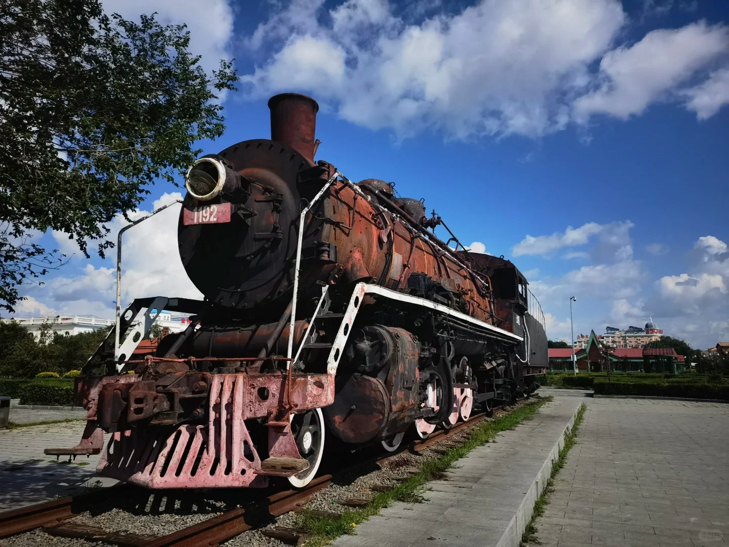 廣場內的火車頭是1940年的日制蒸汽機車頭,下面的鐵軌是1925年蘇聯製造的43鐵軌,所說的43鐵軌,是因為它每一延長米是43公斤而得名。