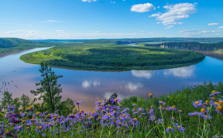 是【黑龍江】流經大興安嶺地區,江面回流急轉而形成的獨特景觀,江灣環抱的島上,綠樹成蔭,花香草茂。黑龍江全長5498公里,在漠河境內流長245公里,龍江第一灣是黑龍江在此處回流急轉,形成長約30公里的「Ω」型的壯麗景觀。