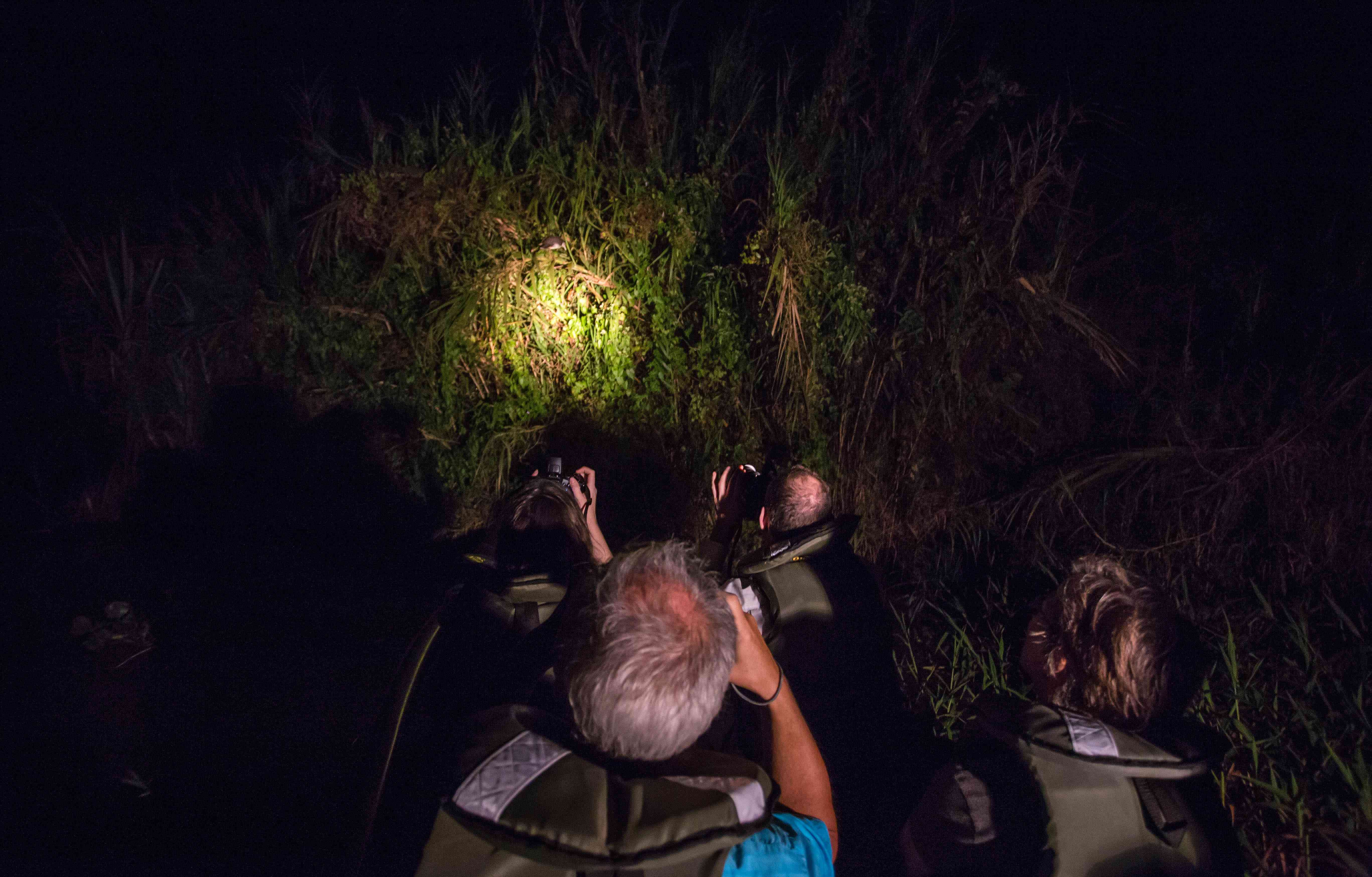 搭乘越野車穿越熱帶雨林,體驗夜間的熱帶叢林生活。仔細觀察並聞一聞,尋找夜行性動物和珍稀鳥類的蹤跡,跟隨保護區的資深導遊,借重其豐富的經驗,一些容易被忽略的動物蹤影與留下的蛛絲馬跡將無所遁形。