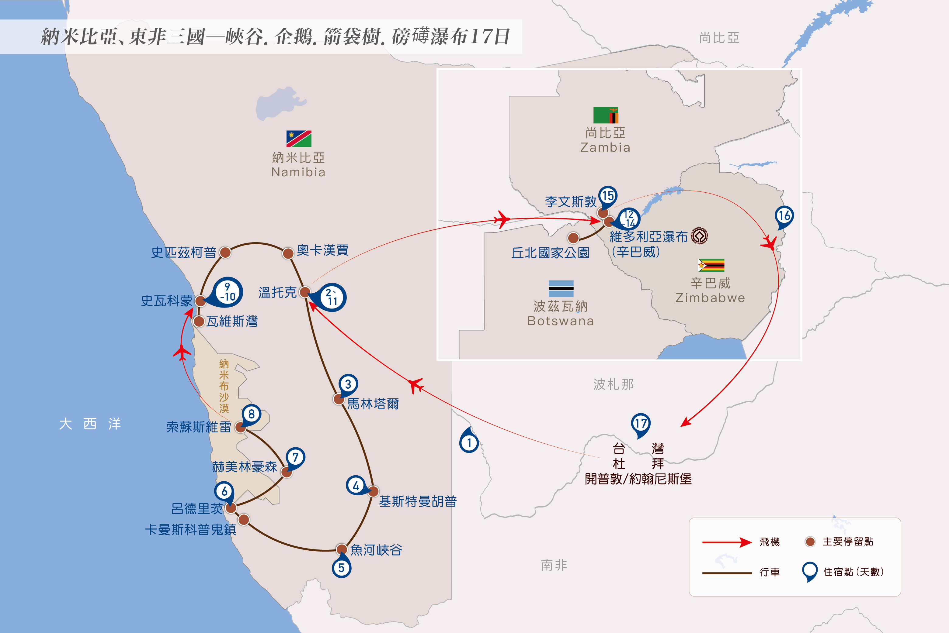 納米比亞、東非三國─峽谷.企鵝.箭袋樹.磅礡瀑布