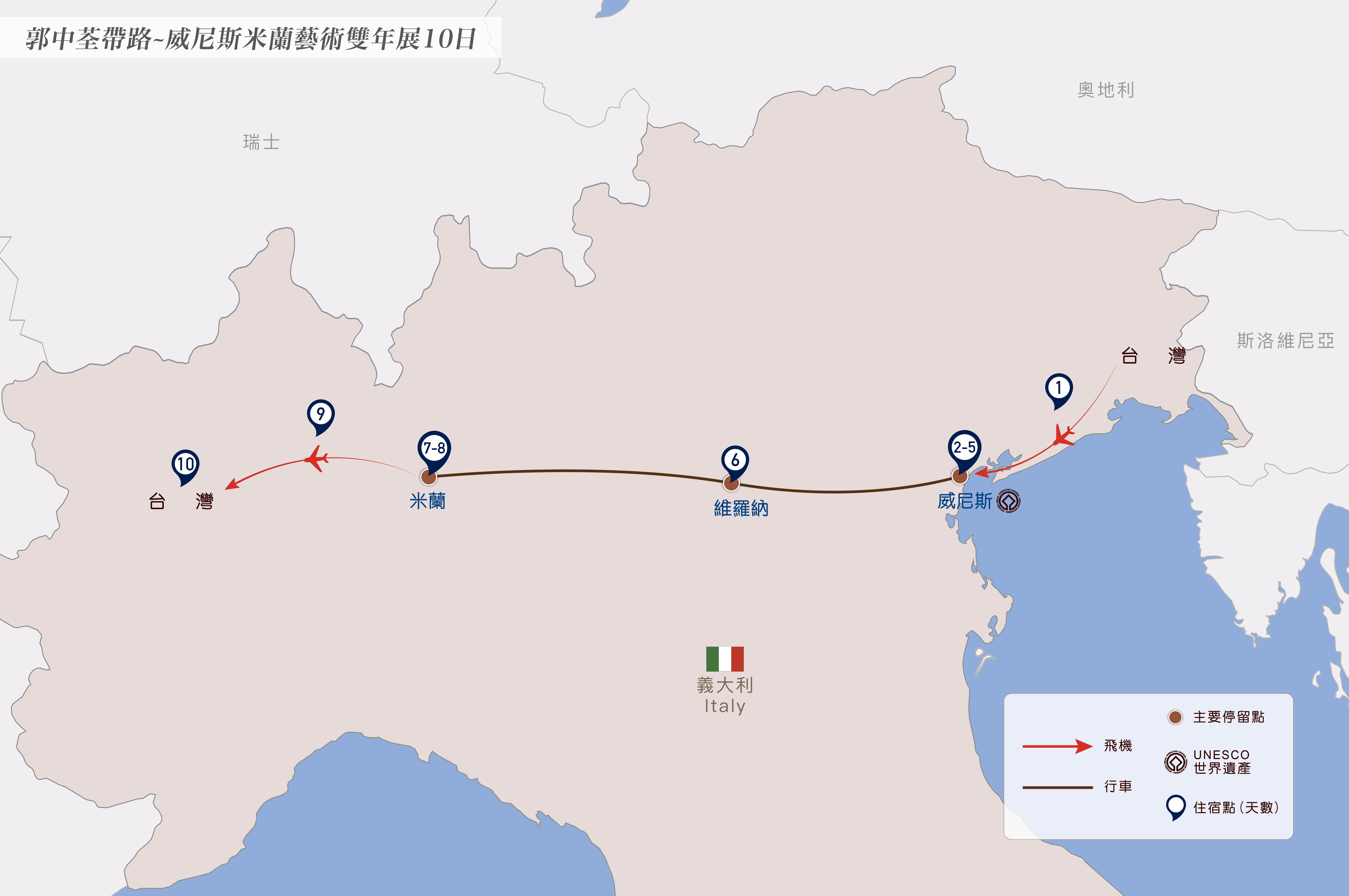 早餐:酒店早餐 午餐:普拉達基金會餐廳 Ristorante Torre 晚餐:敬請自理