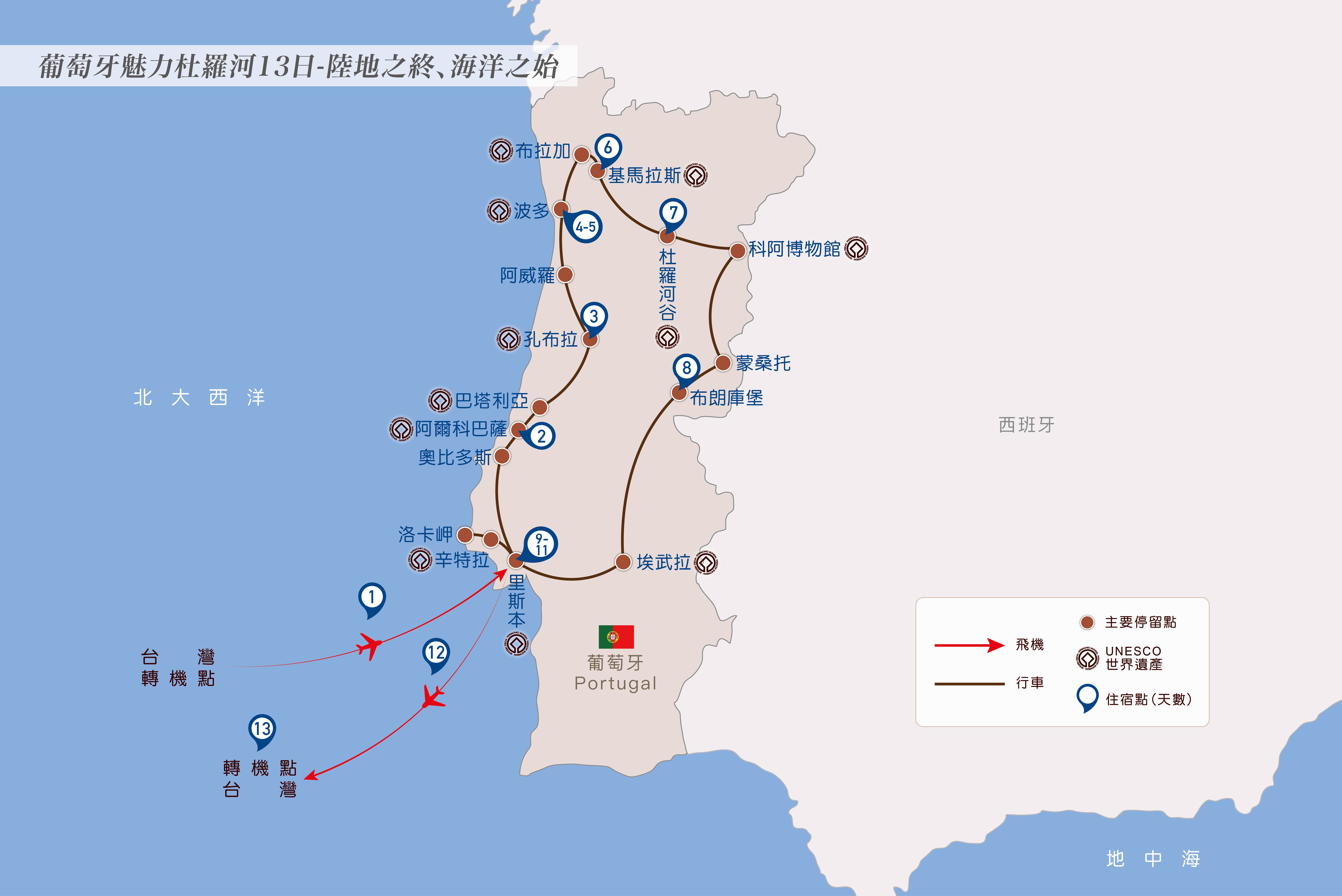 今日桃園機場集合,搭乘土耳其航空經伊斯坦堡飛往里斯本。隔日上午抵達,展開精彩【葡萄牙魅力杜羅河13日】。