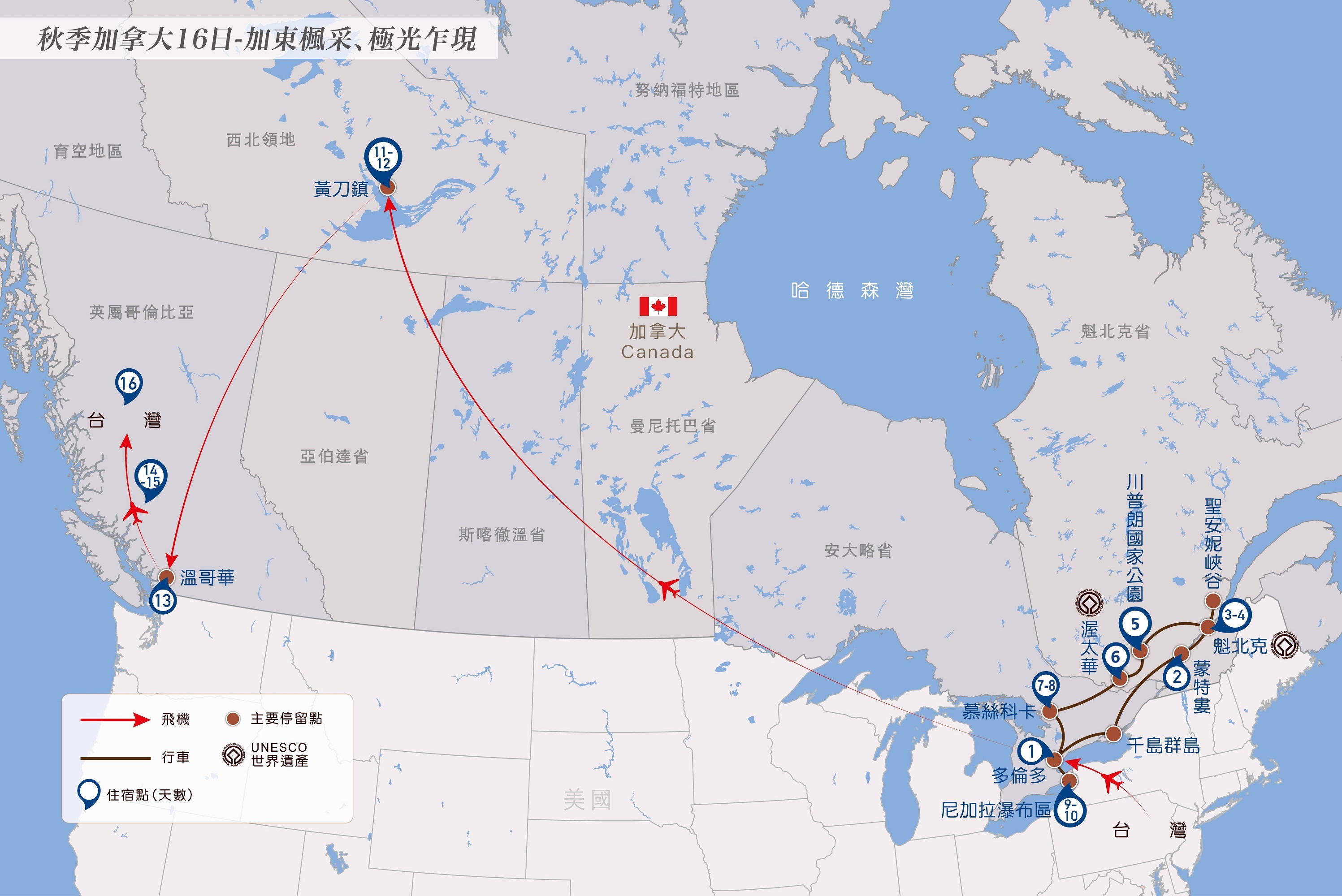 3. 免行李運送費,團費包含每人一件進出飯店行李搬運費 (黃刀鎮及機場飯店無提供行李運送服務,敬請配合自拉)