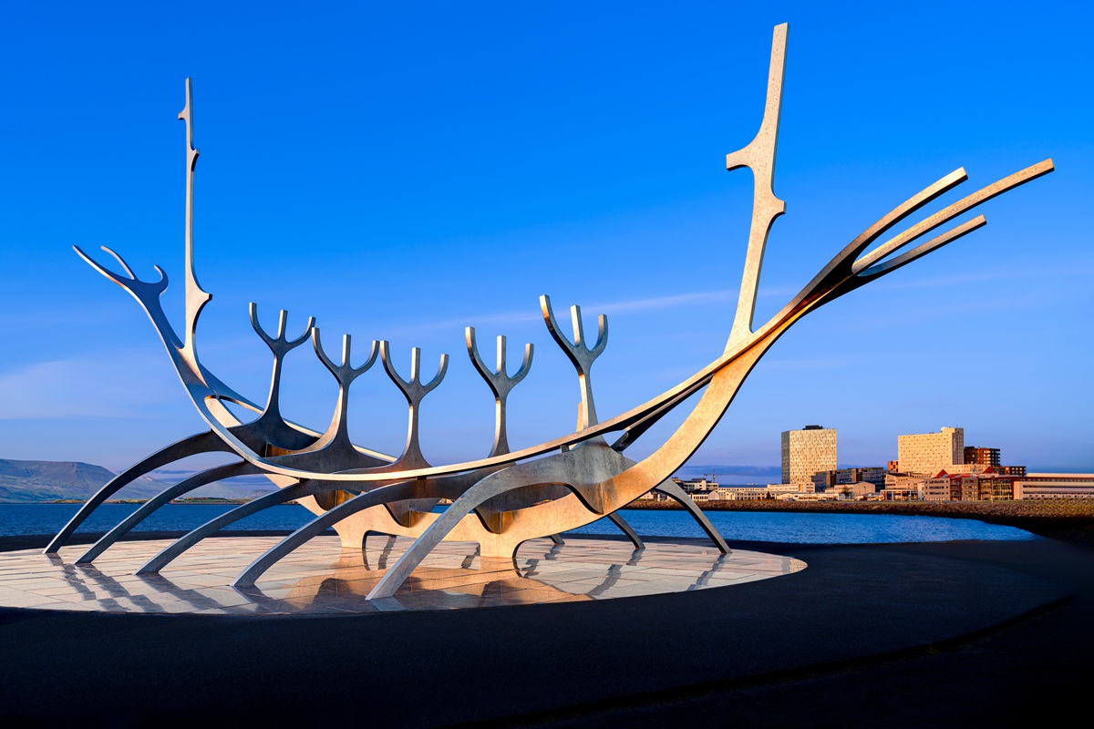 由冰島雕塑家 Jón Gunnar Árnason 創作的藝術作品,是雷克雅維克最具象徵性的地標之一。並非真正的維京船,而是一艘「夢想之舟」,象徵人類對未知的探索與對自由的嚮往。它面朝北大西洋,彷彿正航向太陽,帶領人們去尋找永恆的希望與新生