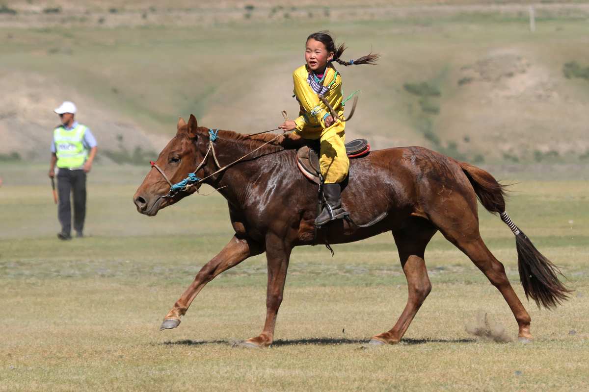與西方賽馬不同,那達慕賽事以長程賽道聞名,路線橫跨廣闊的草原,長度從10公里到27公里不等,距離長短取決於馬匹的年齡。這場史詩般的賽事由6-13歲的兒童擔綱騎師,因為他們體重較輕,能最大程度地減輕馬匹的負擔,讓馬匹發揮出最佳的耐力與速度。