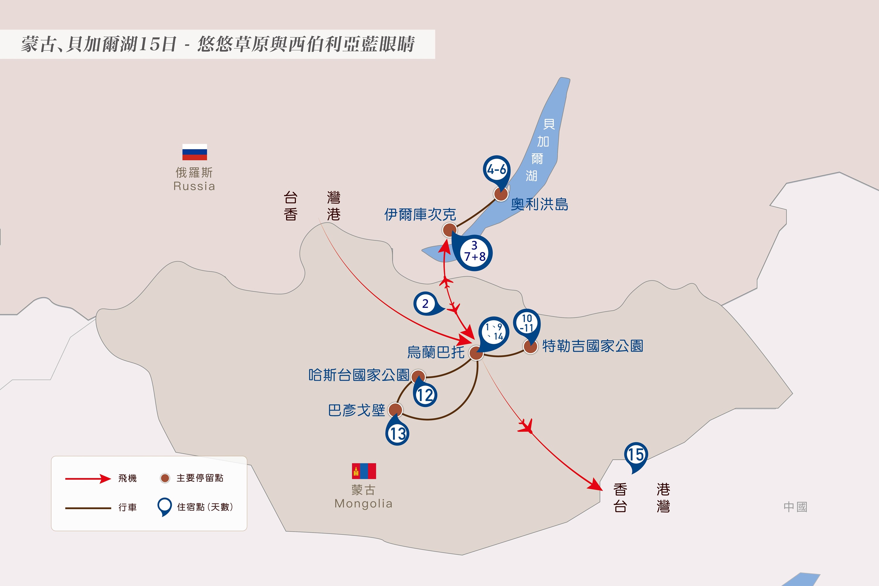 選擇搭機,而非辛苦長達24小時的過夜火車連結外蒙古與貝加爾湖,保有最充足的參觀時間。唯航班選擇不多,今日唯有凌晨班機可選擇,離關、入關手續耗時,請您耐心聽從領隊指示團體行動,謝謝您的配合。