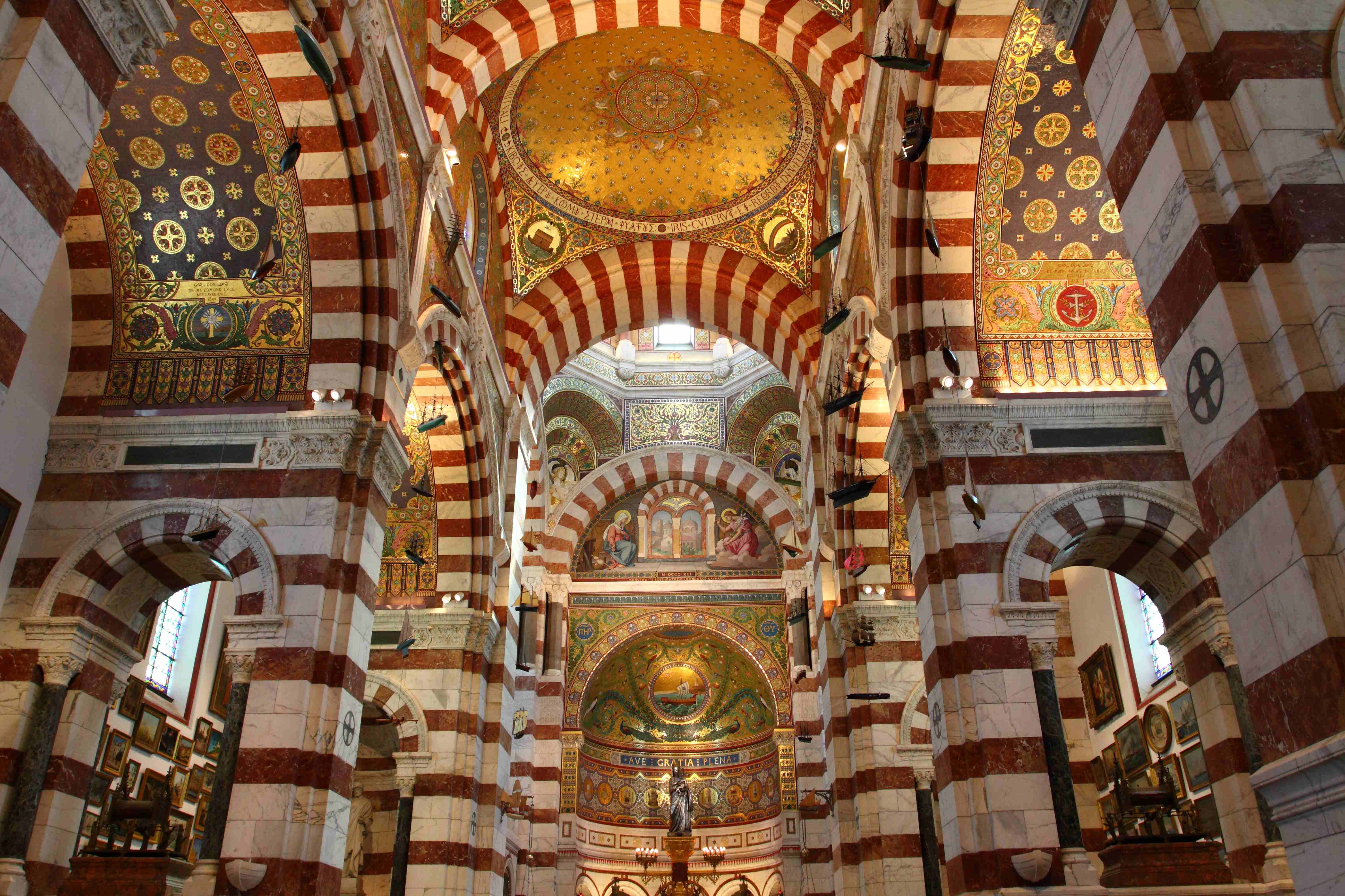 守護聖母聖殿的鐘樓高60米,頂部是聖母子的巨大雕像,在城市的大部分地方和數里外的海上都能看到。聖殿的興建歷時五年,花費17萬噸材料,包括23船來自義大利的大理石和斑岩。內部裝飾著大理石,馬賽克和壁畫。許多的牆壁上掛滿繪畫,牌,模型船,戰爭勳章等。