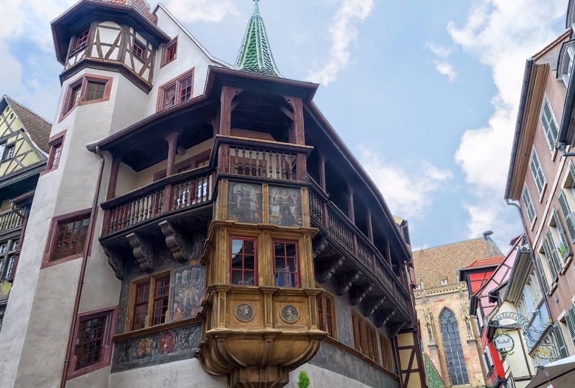 位在大教堂旁的普菲斯特之屋是1537年由帽商Louis Scherer所建的房屋,雖然完工於文藝復興時代,建築本身卻保留了中世紀的木造屋結構,例如工作坊位在一樓、建築上隨意分布的窗戶、拱形屋頂等。這棟外觀裝飾得繁複精美的普菲斯特之屋,一看就知道是有錢人家的房子,如今它不但成為柯瑪市木造屋的代表之一,也是中世紀中產階級商人對文藝復興品味愛好的最佳證據。