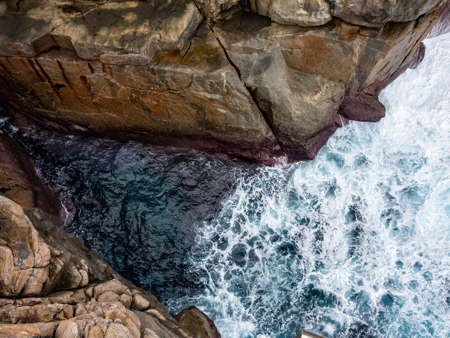 在自然橋的旁邊,同樣也是海岸被海水侵蝕造成的海蝕溝,隙口有轟隆隆的拍岸浪濤,聲勢驚人。自觀景台極目四望,沿岸岩石粼粼,地景險惡。在此可鳥瞰托迪蘭普國家公園海邊的層巒疊嶂,亦可飽覽斷岩峭壁的海天之險。