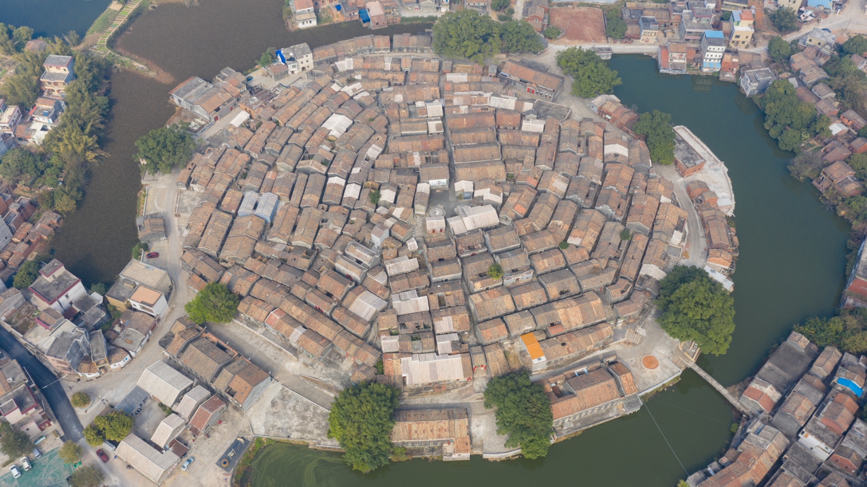 村落始建於南宋嘉定年間,距今逾800年歷史,整體按《周易》八卦方位建造於鳳凰形鳳崗小山上,布局暗含洛書河圖玄機,形成主巷15條、橫向84條的八卦陣形,村周環繞圓形池塘與古榕樹。該村入選廣東省首批古村落中國傳統村落,並創建為國家3A級景區。