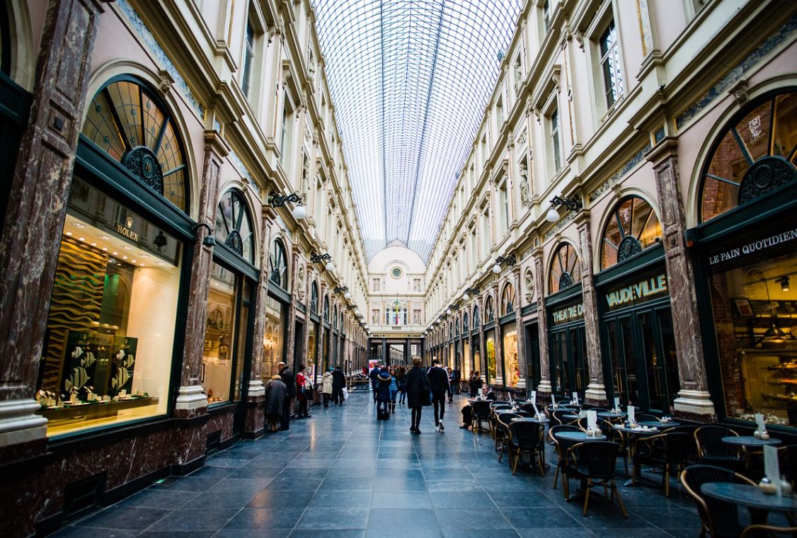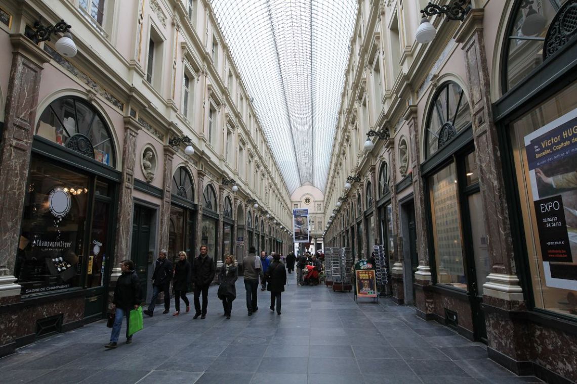 歐洲最古老的購物街,亦堪稱是歐洲最美麗的購物商場,建於1847年,是一棟集新古典風與義大利風格於一身的建築,這商場可分為三部份,皇后商場、國王商場和王子商場。目前商場內有各式各樣的高級商店或餐廳,氣氛高級且優雅,感覺與一般的購物中心十分不同。而且,商場的其中一條出口與以美食著稱的布雀街相通。