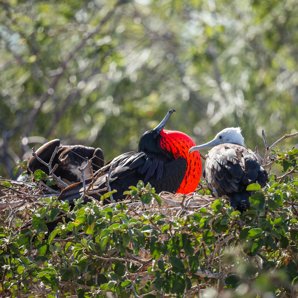 軍艦鳥是安地卡及巴布達的國鳥。雄鳥擁有一個紅色的喉囊,可以在求偶的時候膨脹鼓起,以吸引雌鳥。巴布達的軍艦鳥類保護區位於該島的西北部潟湖,只能乘船抵達。該保護區擁有超過 170 種鳥類,估計有20萬隻軍艦鳥棲息於此。