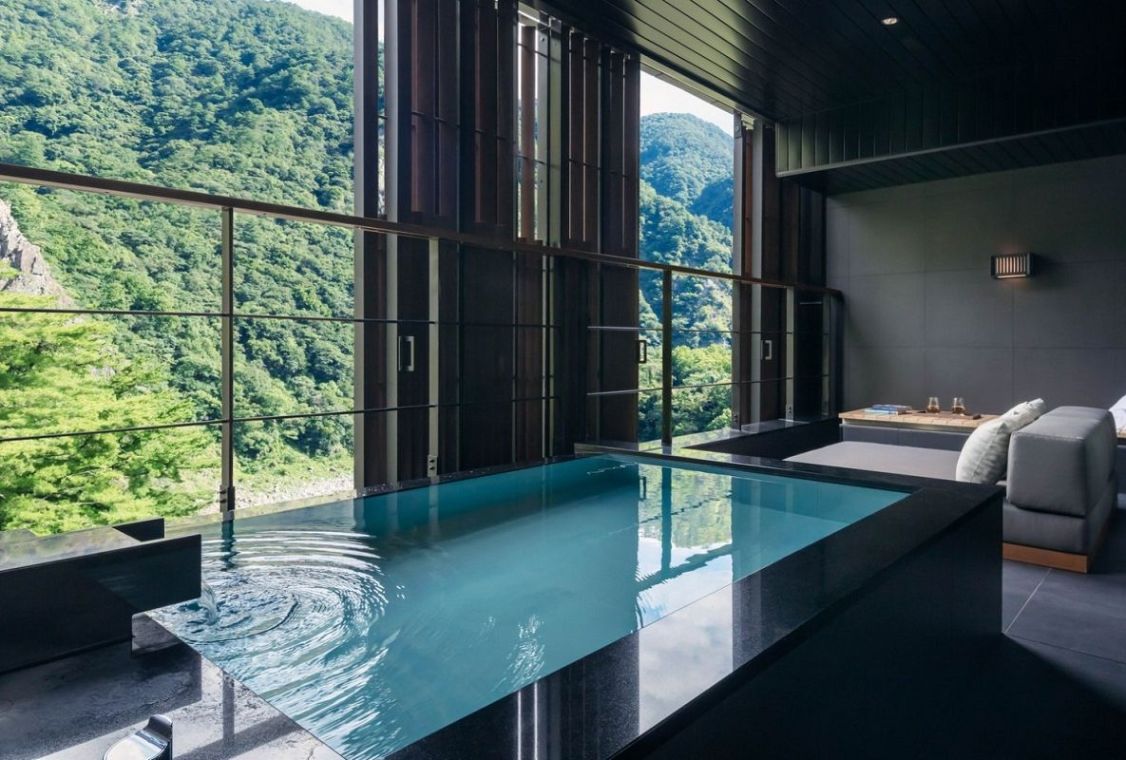 虹夕諾雅 谷關帶您重新體驗大地孕育的自然美景與溫泉潤澤。所有溫泉皆為裸湯,室內溫泉浴場飄著令人心曠神怡的檜木香,質滑的弱鹼性碳酸氫鈉泉滋潤著肌膚;露天溫泉浴池曲折蜿蜒的設計,讓您能近距離欣賞春日粉櫻與秋日楓紅等季節美景。位於溫泉深處瀑布傾流而下,隆隆低鳴的水聲洗滌淨化心靈深處。這裡讓您徹底沉浸在大自然、與之相融。