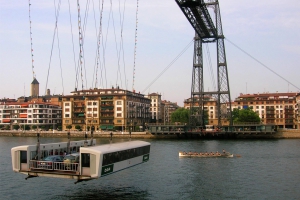 由艾菲爾的徒弟所設計,是世界首座運渡橋,1893開通、劃時代的輕量鐵纜線構造,成為世界各地建造運渡橋的範本,橋上用鋼索垂釣的運渡船艙可以運送人車,連接內比庸河出海口兩岸的城鎮,兩端橋柱亦安裝電梯至橋頂,行人可從橋頂穿越橋身步行過橋。