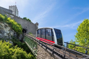 城堡建於11世紀,是歐洲最大且保存最完整的中世紀城堡之一。可搭乘1892年啟用的登山纜車登頂,昔日蒸汽驅動,後改電力。城堡內有宮殿、軍事設施與博物館;登上城牆,紅瓦舊城與阿爾卑斯群峰壯麗美景盡收眼底。